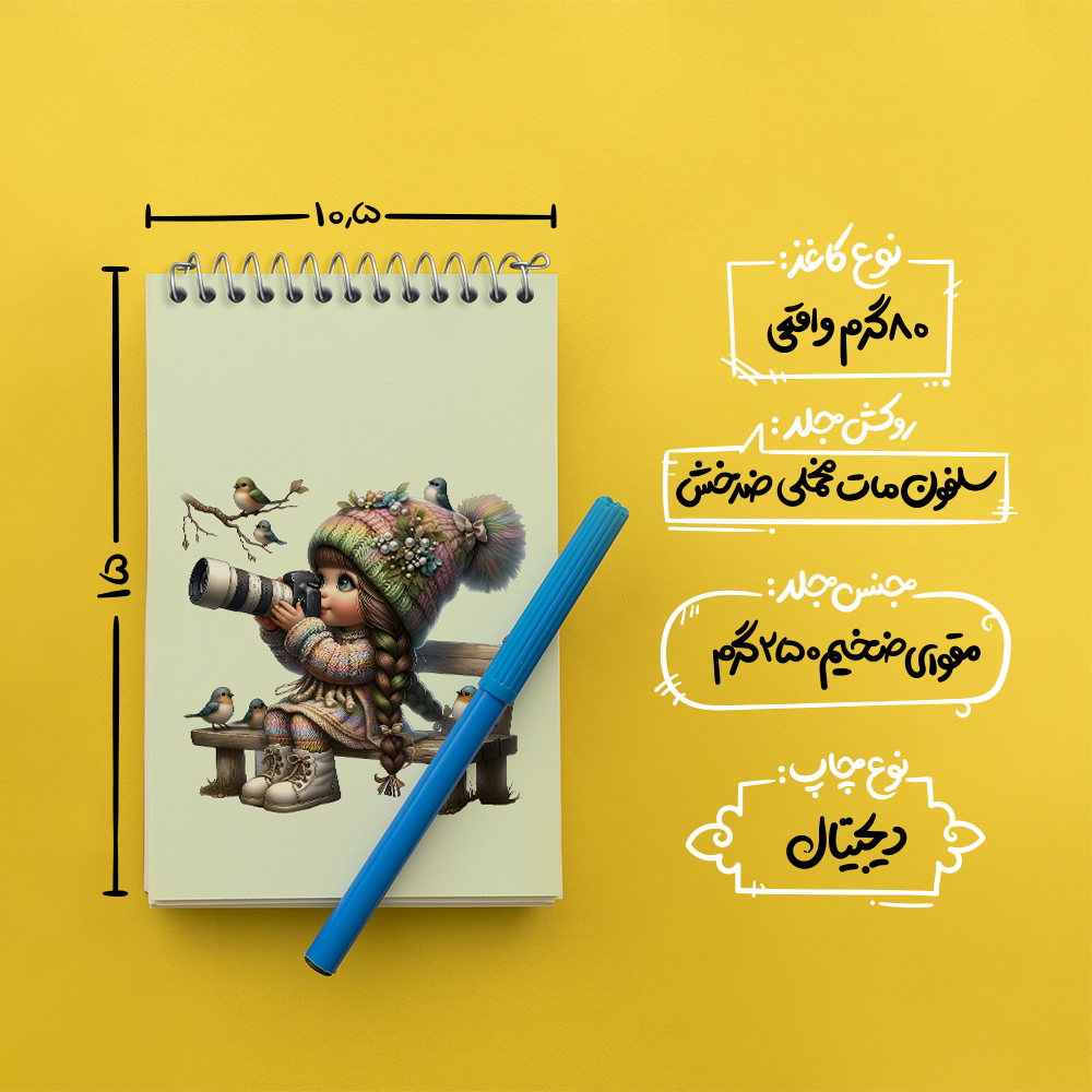 برند خندالو در زمینه تولید انواع دفاتر فانتزی و تحصیلی فعالیت میکند که به دلیل جذابیت ظاهری و طرح های متنوع طرفداران زیادی دارد. دفتر یادداشت خندالو طرح دختر عکاس محصولی مناسب برای همه عاشقان لوازم التحریر است و همچنین همه کسانی که بنا به موقعیت تحصیل یا شغلشان با دفتر و نوشت افزار زیاد سر و کار دارند. در تولید دفتر یادداشت خندالو طرح دختر عکاس از نوع صحافی فنر مارپیچ استفاده شده که در این نوع صحافی برگه‌ها به راحتی چرخیده و یا بیرون آورده می شوند.