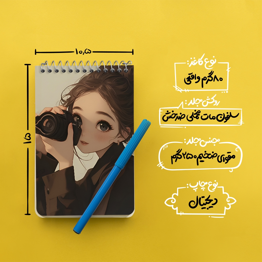 برند خندالو در زمینه تولید انواع دفاتر فانتزی و تحصیلی فعالیت میکند که به دلیل جذابیت ظاهری و طرح های متنوع طرفداران زیادی دارد. دفتر یادداشت خندالو طرح دختر عکاس محصولی مناسب برای همه عاشقان لوازم التحریر است و همچنین همه کسانی که بنا به موقعیت تحصیل یا شغلشان با دفتر و نوشت افزار زیاد سر و کار دارند. در تولید دفتر یادداشت خندالو طرح دختر عکاس از نوع صحافی فنر مارپیچ استفاده شده که در این نوع صحافی برگه‌ها به راحتی چرخیده و یا بیرون آورده می شوند.