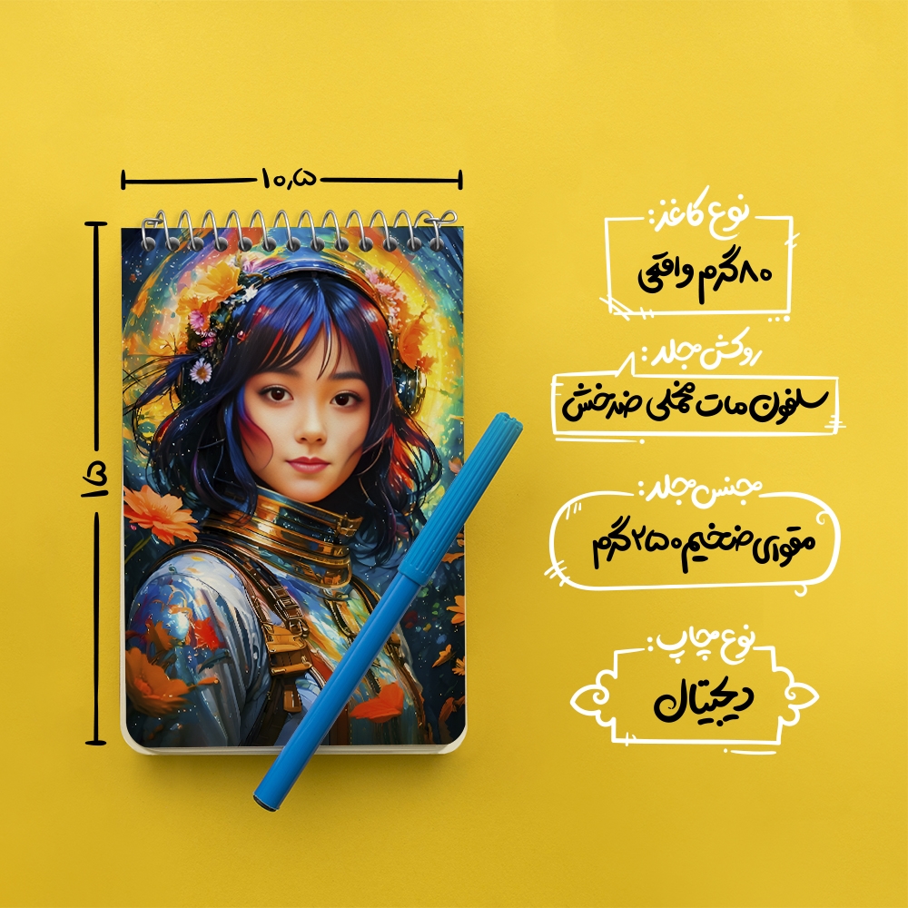 برند خندالو در زمینه تولید انواع دفاتر فانتزی و تحصیلی فعالیت میکند که به دلیل جذابیت ظاهری و طرح های متنوع طرفداران زیادی دارد. دفتر یادداشت خندالو طرح دختر فضانورد محصولی مناسب برای همه عاشقان لوازم التحریر است و همچنین همه کسانی که بنا به موقعیت تحصیل یا شغلشان با دفتر و نوشت افزار زیاد سر و کار دارند. در تولید دفتر یادداشت خندالو طرح دختر فضانورد از نوع صحافی فنر مارپیچ استفاده شده که در این نوع صحافی برگه‌ها به راحتی چرخیده و یا بیرون آورده می شوند.