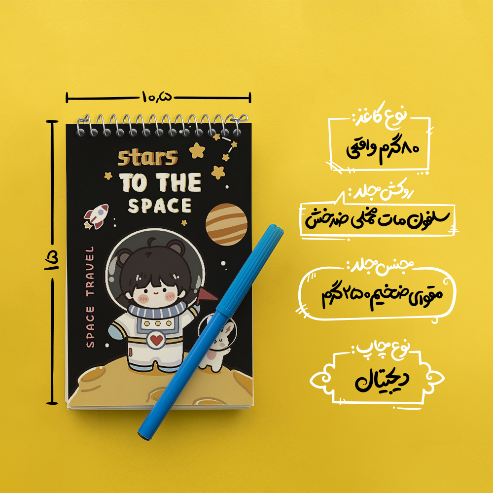 برند خندالو در زمینه تولید انواع دفاتر فانتزی و تحصیلی فعالیت میکند که به دلیل جذابیت ظاهری و طرح های متنوع طرفداران زیادی دارد. دفتر یادداشت خندالو طرح دختر فضانورد محصولی مناسب برای همه عاشقان لوازم التحریر است و همچنین همه کسانی که بنا به موقعیت تحصیل یا شغلشان با دفتر و نوشت افزار زیاد سر و کار دارند. در تولید دفتر یادداشت خندالو طرح دختر فضانورد از نوع صحافی فنر مارپیچ استفاده شده که در این نوع صحافی برگه‌ها به راحتی چرخیده و یا بیرون آورده می شوند.