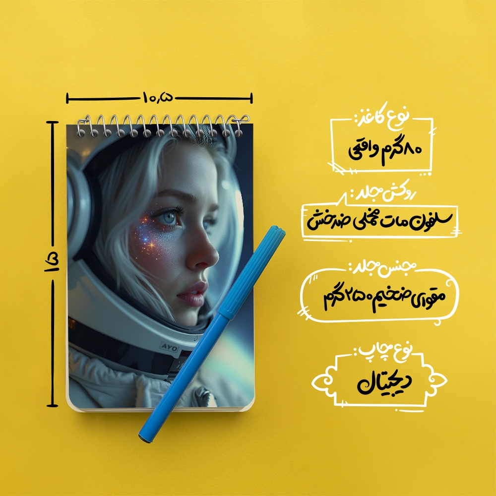 برند خندالو در زمینه تولید انواع دفاتر فانتزی و تحصیلی فعالیت میکند که به دلیل جذابیت ظاهری و طرح های متنوع طرفداران زیادی دارد. دفتر یادداشت خندالو طرح دختر فضانورد محصولی مناسب برای همه عاشقان لوازم التحریر است و همچنین همه کسانی که بنا به موقعیت تحصیل یا شغلشان با دفتر و نوشت افزار زیاد سر و کار دارند. در تولید دفتر یادداشت خندالو طرح دختر فضانورد از نوع صحافی فنر مارپیچ استفاده شده که در این نوع صحافی برگه‌ها به راحتی چرخیده و یا بیرون آورده می شوند.