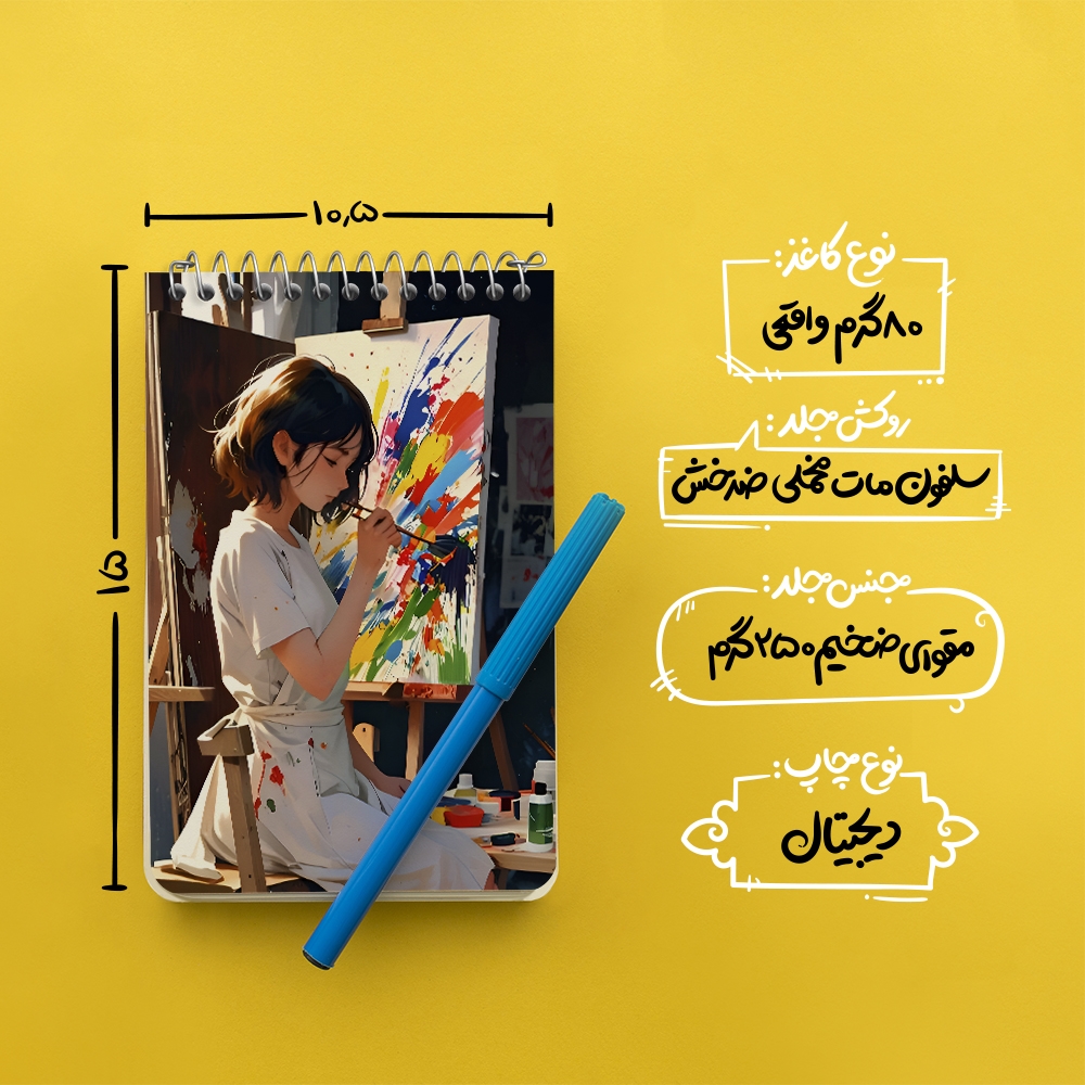 برند خندالو در زمینه تولید انواع دفاتر فانتزی و تحصیلی فعالیت میکند که به دلیل جذابیت ظاهری و طرح های متنوع طرفداران زیادی دارد. دفتر یادداشت خندالو طرح دختر نقاش محصولی مناسب برای همه عاشقان لوازم التحریر است و همچنین همه کسانی که بنا به موقعیت تحصیل یا شغلشان با دفتر و نوشت افزار زیاد سر و کار دارند. در تولید دفتر یادداشت خندالو طرح دختر نقاش از نوع صحافی فنر مارپیچ استفاده شده که در این نوع صحافی برگه‌ها به راحتی چرخیده و یا بیرون آورده می شوند.