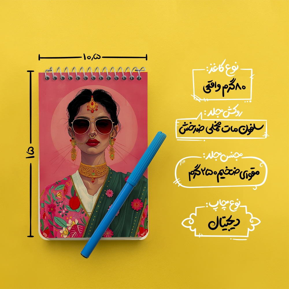برند خندالو در زمینه تولید انواع دفاتر فانتزی و تحصیلی فعالیت میکند که به دلیل جذابیت ظاهری و طرح های متنوع طرفداران زیادی دارد. دفتر یادداشت خندالو طرح دختر هندی محصولی مناسب برای همه عاشقان لوازم التحریر است و همچنین همه کسانی که بنا به موقعیت تحصیل یا شغلشان با دفتر و نوشت افزار زیاد سر و کار دارند. در تولید دفتر یادداشت خندالو طرح دختر هندی از نوع صحافی فنر مارپیچ استفاده شده که در این نوع صحافی برگهها به راحتی چرخیده و یا بیرون آورده می شوند. دفتر های خندالو دارای جلد انعطاف پذیر از جنس مقوای گلاسه 250 گرم با روکش سلفون مات مخملی است که به شما امکان میدهد از دفتر خود بدون اینکه نگرانی از شکستن یا خراب شدن جلد را داشته باشید استفاده کنید و همچنین در این دفاتر از کاغذ 80 گرم با کیفیت استفاده شده که باعث میشود هنگام نوشتن به خوبی جوهر قلم بر روی صفحه نشسته و از خط خوردگیها جلوگیری کند. دفتر یادداشت خندالو با جنس و دوام مناسب، برگه های کاملاً سفید و خطوط طوسی دقیق را داراست که انسان را به نوشتن منظم و زیبا ترغیب میکند. طراحی کاملاً مناسب این دفاتر، به همراه کیفیت بالا، از آن یک محصول مورد علاقه و قابل اعتماد برای همه مقاطع تحصیلی میسازد. دفتر یادداشت خندالو طرح دختر هندی انتخابی هوشمندانه و مناسب برای افرادی است که به دنبال دفتری با کیفیت و کاربرد عالی هستند. این دفتر، همراه خوبی برای شما در تمام مراحل تحصیل و کار خواهد بود و تجربهای لذتبخش از نوشتن و آموختن را به شما هدیه میدهد.