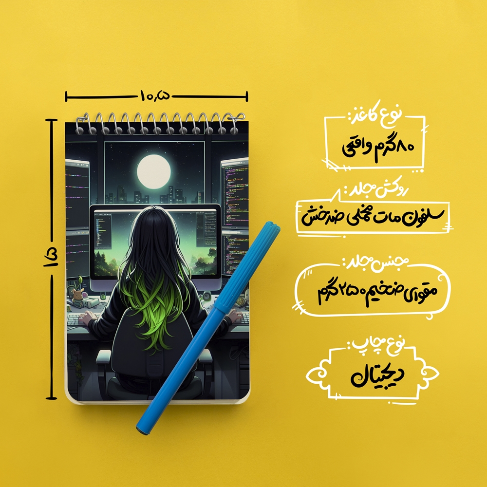 برند خندالو در زمینه تولید انواع دفاتر فانتزی و تحصیلی فعالیت میکند که به دلیل جذابیت ظاهری و طرح های متنوع طرفداران زیادی دارد. دفتر یادداشت خندالو طرح دختر هکر محصولی مناسب برای همه عاشقان لوازم التحریر است و همچنین همه کسانی که بنا به موقعیت تحصیل یا شغلشان با دفتر و نوشت افزار زیاد سر و کار دارند. در تولید دفتر یادداشت خندالو طرح دختر هکر از نوع صحافی فنر مارپیچ استفاده شده که در این نوع صحافی برگهها به راحتی چرخیده و یا بیرون آورده می شوند. دفتر های خندالو دارای جلد انعطاف پذیر از جنس مقوای گلاسه 250 گرم با روکش سلفون مات مخملی است که به شما امکان میدهد از دفتر خود بدون اینکه نگرانی از شکستن یا خراب شدن جلد را داشته باشید استفاده کنید و همچنین در این دفاتر از کاغذ 80 گرم با کیفیت استفاده شده که باعث میشود هنگام نوشتن به خوبی جوهر قلم بر روی صفحه نشسته و از خط خوردگیها جلوگیری کند. دفتر یادداشت خندالو با جنس و دوام مناسب، برگه های کاملاً سفید و خطوط طوسی دقیق را داراست که انسان را به نوشتن منظم و زیبا ترغیب میکند. طراحی کاملاً مناسب این دفاتر، به همراه کیفیت بالا، از آن یک محصول مورد علاقه و قابل اعتماد برای همه مقاطع تحصیلی میسازد. دفتر یادداشت خندالو طرح دختر هکر انتخابی هوشمندانه و مناسب برای افرادی است که به دنبال دفتری با کیفیت و کاربرد عالی هستند. این دفتر، همراه خوبی برای شما در تمام مراحل تحصیل و کار خواهد بود و تجربهای لذتبخش از نوشتن و آموختن را به شما هدیه میدهد.