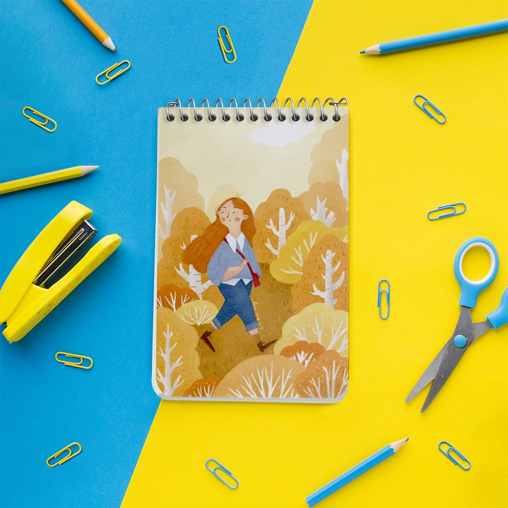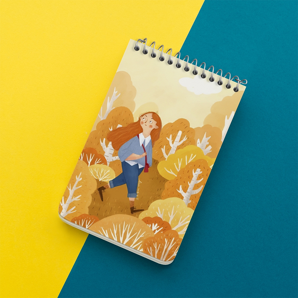 دفتر یادداشت دختر و جنگل پاییزی