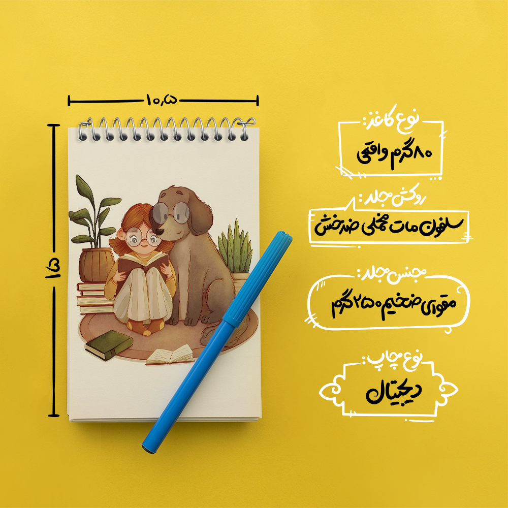 برند خندالو در زمینه تولید انواع دفاتر فانتزی و تحصیلی فعالیت میکند که به دلیل جذابیت ظاهری و طرح های متنوع طرفداران زیادی دارد. دفتر یادداشت خندالو طرح دختر و سگ محصولی مناسب برای همه عاشقان لوازم التحریر است و همچنین همه کسانی که بنا به موقعیت تحصیل یا شغلشان با دفتر و نوشت افزار زیاد سر و کار دارند. در تولید دفتر یادداشت خندالو طرح دختر و سگ از نوع صحافی فنر مارپیچ استفاده شده که در این نوع صحافی برگهها به راحتی چرخیده و یا بیرون آورده می شوند. دفتر های خندالو دارای جلد انعطاف پذیر از جنس مقوای گلاسه 250 گرم با روکش سلفون مات مخملی است که به شما امکان میدهد از دفتر خود بدون اینکه نگرانی از شکستن یا خراب شدن جلد را داشته باشید استفاده کنید و همچنین در این دفاتر از کاغذ 80 گرم با کیفیت استفاده شده که باعث میشود هنگام نوشتن به خوبی جوهر قلم بر روی صفحه نشسته و از خط خوردگیها جلوگیری کند. دفتر یادداشت خندالو با جنس و دوام مناسب، برگه های کاملاً سفید و خطوط طوسی دقیق را داراست که انسان را به نوشتن منظم و زیبا ترغیب میکند. طراحی کاملاً مناسب این دفاتر، به همراه کیفیت بالا، از آن یک محصول مورد علاقه و قابل اعتماد برای همه مقاطع تحصیلی میسازد. دفتر یادداشت خندالو طرح دختر و سگ انتخابی هوشمندانه و مناسب برای افرادی است که به دنبال دفتری با کیفیت و کاربرد عالی هستند. این دفتر، همراه خوبی برای شما در تمام مراحل تحصیل و کار خواهد بود و تجربهای لذتبخش از نوشتن و آموختن را به شما هدیه میدهد.