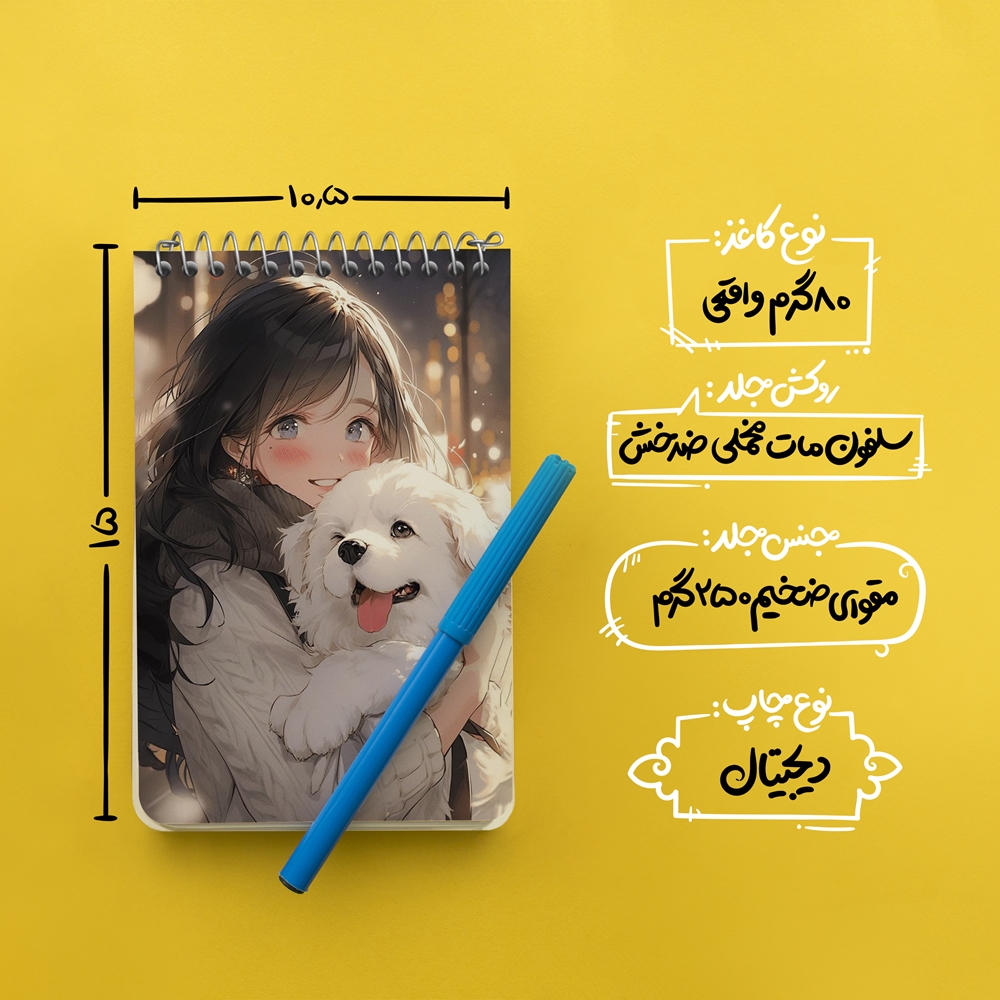 برند خندالو در زمینه تولید انواع دفاتر فانتزی و تحصیلی فعالیت میکند که به دلیل جذابیت ظاهری و طرح های متنوع طرفداران زیادی دارد. دفتر یادداشت خندالو طرح دختر و سگ محصولی مناسب برای همه عاشقان لوازم التحریر است و همچنین همه کسانی که بنا به موقعیت تحصیل یا شغلشان با دفتر و نوشت افزار زیاد سر و کار دارند. در تولید دفتر یادداشت خندالو طرح دختر و سگ از نوع صحافی فنر مارپیچ استفاده شده که در این نوع صحافی برگه‌ها به راحتی چرخیده و یا بیرون آورده می شوند.