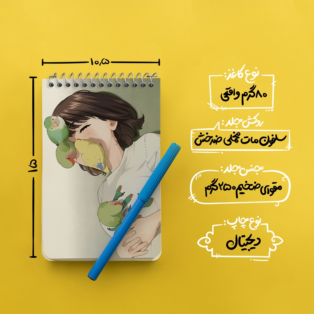 برند خندالو در زمینه تولید انواع دفاتر فانتزی و تحصیلی فعالیت میکند که به دلیل جذابیت ظاهری و طرح های متنوع طرفداران زیادی دارد. دفتر یادداشت خندالو طرح دختر و طوطی محصولی مناسب برای همه عاشقان لوازم التحریر است و همچنین همه کسانی که بنا به موقعیت تحصیل یا شغلشان با دفتر و نوشت افزار زیاد سر و کار دارند. در تولید دفتر یادداشت خندالو طرح دختر و طوطی از نوع صحافی فنر مارپیچ استفاده شده که در این نوع صحافی برگهها به راحتی چرخیده و یا بیرون آورده می شوند. دفتر های خندالو دارای جلد انعطاف پذیر از جنس مقوای گلاسه 250 گرم با روکش سلفون مات مخملی است که به شما امکان میدهد از دفتر خود بدون اینکه نگرانی از شکستن یا خراب شدن جلد را داشته باشید استفاده کنید و همچنین در این دفاتر از کاغذ 80 گرم با کیفیت استفاده شده که باعث میشود هنگام نوشتن به خوبی جوهر قلم بر روی صفحه نشسته و از خط خوردگیها جلوگیری کند. دفتر یادداشت خندالو با جنس و دوام مناسب، برگه های کاملاً سفید و خطوط طوسی دقیق را داراست که انسان را به نوشتن منظم و زیبا ترغیب میکند. طراحی کاملاً مناسب این دفاتر، به همراه کیفیت بالا، از آن یک محصول مورد علاقه و قابل اعتماد برای همه مقاطع تحصیلی میسازد. دفتر یادداشت خندالو طرح دختر و طوطی انتخابی هوشمندانه و مناسب برای افرادی است که به دنبال دفتری با کیفیت و کاربرد عالی هستند. این دفتر، همراه خوبی برای شما در تمام مراحل تحصیل و کار خواهد بود و تجربهای لذتبخش از نوشتن و آموختن را به شما هدیه میدهد.