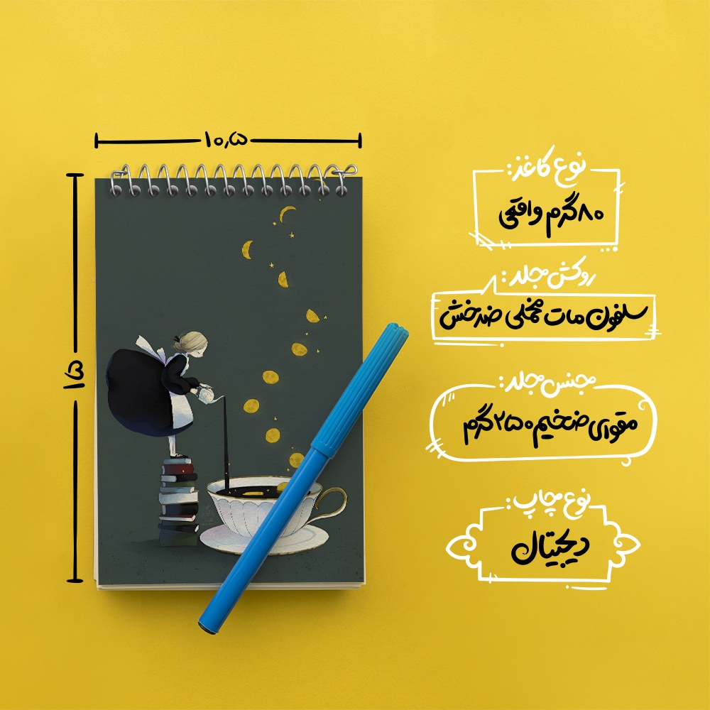 برند خندالو در زمینه تولید انواع دفاتر فانتزی و تحصیلی فعالیت میکند که به دلیل جذابیت ظاهری و طرح های متنوع طرفداران زیادی دارد. دفتر یادداشت خندالو طرح دختر و فنجان ماه محصولی مناسب برای همه عاشقان لوازم التحریر است و همچنین همه کسانی که بنا به موقعیت تحصیل یا شغلشان با دفتر و نوشت افزار زیاد سر و کار دارند. در تولید دفتر یادداشت خندالو طرح دختر و فنجان ماه از نوع صحافی فنر مارپیچ استفاده شده که در این نوع صحافی برگهها به راحتی چرخیده و یا بیرون آورده می شوند. دفتر های خندالو دارای جلد انعطاف پذیر از جنس مقوای گلاسه 250 گرم با روکش سلفون مات مخملی است که به شما امکان میدهد از دفتر خود بدون اینکه نگرانی از شکستن یا خراب شدن جلد را داشته باشید استفاده کنید و همچنین در این دفاتر از کاغذ 80 گرم با کیفیت استفاده شده که باعث میشود هنگام نوشتن به خوبی جوهر قلم بر روی صفحه نشسته و از خط خوردگیها جلوگیری کند. دفتر یادداشت خندالو با جنس و دوام مناسب، برگه های کاملاً سفید و خطوط طوسی دقیق را داراست که انسان را به نوشتن منظم و زیبا ترغیب میکند. طراحی کاملاً مناسب این دفاتر، به همراه کیفیت بالا، از آن یک محصول مورد علاقه و قابل اعتماد برای همه مقاطع تحصیلی میسازد. دفتر یادداشت خندالو طرح دختر و فنجان ماه انتخابی هوشمندانه و مناسب برای افرادی است که به دنبال دفتری با کیفیت و کاربرد عالی هستند. این دفتر، همراه خوبی برای شما در تمام مراحل تحصیل و کار خواهد بود و تجربهای لذتبخش از نوشتن و آموختن را به شما هدیه میدهد.