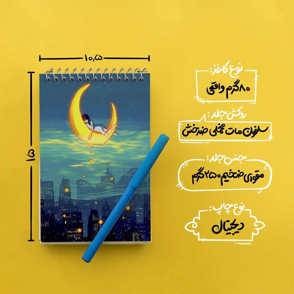 برند خندالو در زمینه تولید انواع دفاتر فانتزی و تحصیلی فعالیت میکند که به دلیل جذابیت ظاهری و طرح های متنوع طرفداران زیادی دارد. دفتر یادداشت خندالو طرح دختر و ماه محصولی مناسب برای همه عاشقان لوازم التحریر است و همچنین همه کسانی که بنا به موقعیت تحصیل یا شغلشان با دفتر و نوشت افزار زیاد سر و کار دارند. در تولید دفتر یادداشت خندالو طرح دختر و ماه از نوع صحافی فنر مارپیچ استفاده شده که در این نوع صحافی برگه‌ها به راحتی چرخیده و یا بیرون آورده می شوند.