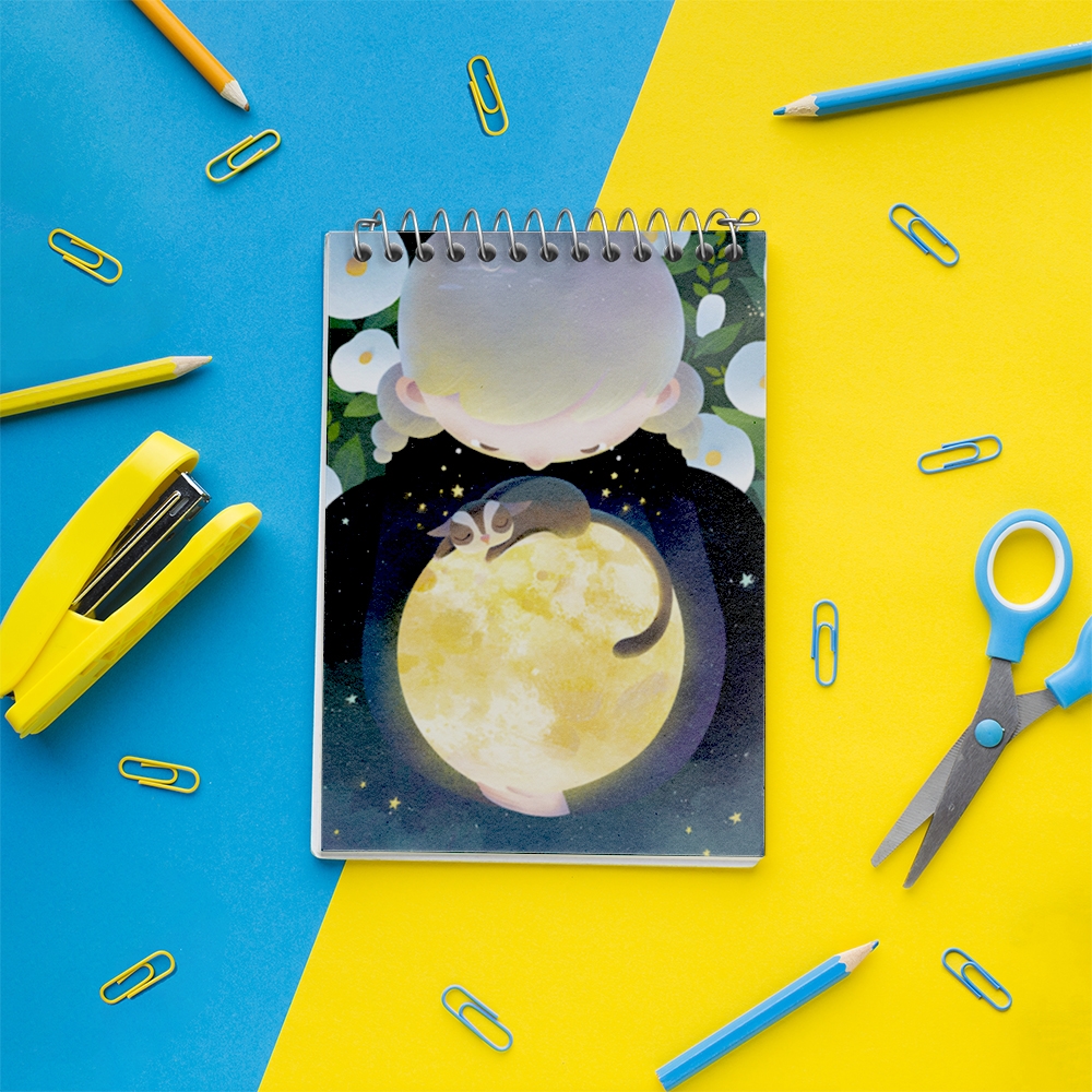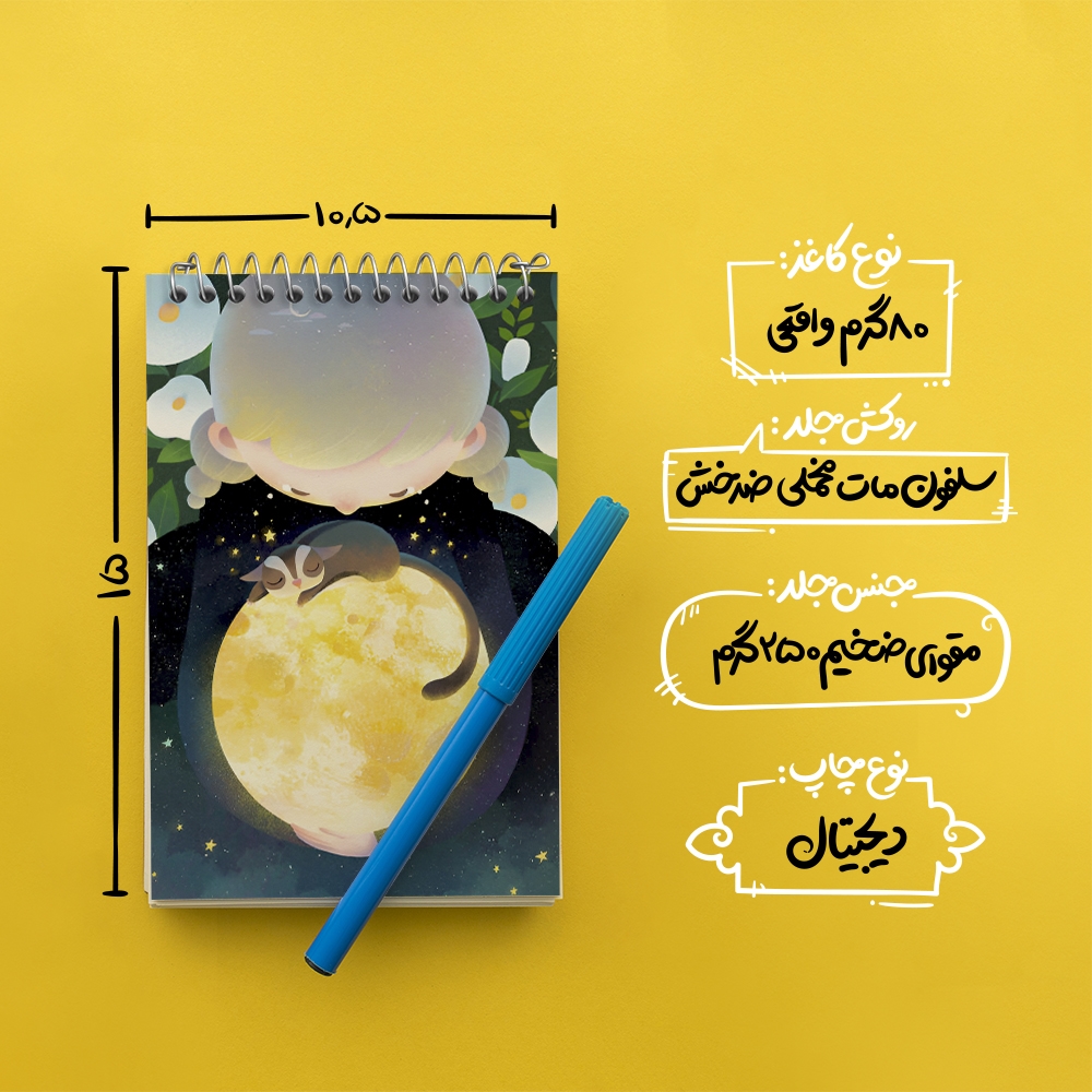 برند خندالو در زمینه تولید انواع دفاتر فانتزی و تحصیلی فعالیت میکند که به دلیل جذابیت ظاهری و طرح های متنوع طرفداران زیادی دارد. دفتر یادداشت خندالو طرح دختر و ماه محصولی مناسب برای همه عاشقان لوازم التحریر است و همچنین همه کسانی که بنا به موقعیت تحصیل یا شغلشان با دفتر و نوشت افزار زیاد سر و کار دارند. در تولید دفتر یادداشت خندالو طرح دختر و ماه از نوع صحافی فنر مارپیچ استفاده شده که در این نوع صحافی برگه‌ها به راحتی چرخیده و یا بیرون آورده می شوند.