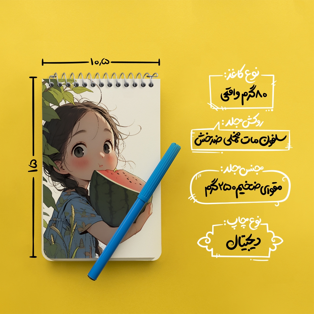 برند خندالو در زمینه تولید انواع دفاتر فانتزی و تحصیلی فعالیت میکند که به دلیل جذابیت ظاهری و طرح های متنوع طرفداران زیادی دارد. دفتر یادداشت خندالو طرح دختر و هندوانه محصولی مناسب برای همه عاشقان لوازم التحریر است و همچنین همه کسانی که بنا به موقعیت تحصیل یا شغلشان با دفتر و نوشت افزار زیاد سر و کار دارند. در تولید دفتر یادداشت خندالو طرح دختر و هندوانه از نوع صحافی فنر مارپیچ استفاده شده که در این نوع صحافی برگهها به راحتی چرخیده و یا بیرون آورده می شوند. دفتر های خندالو دارای جلد انعطاف پذیر از جنس مقوای گلاسه 250 گرم با روکش سلفون مات مخملی است که به شما امکان میدهد از دفتر خود بدون اینکه نگرانی از شکستن یا خراب شدن جلد را داشته باشید استفاده کنید و همچنین در این دفاتر از کاغذ 80 گرم با کیفیت استفاده شده که باعث میشود هنگام نوشتن به خوبی جوهر قلم بر روی صفحه نشسته و از خط خوردگیها جلوگیری کند. دفتر یادداشت خندالو با جنس و دوام مناسب، برگه های کاملاً سفید و خطوط طوسی دقیق را داراست که انسان را به نوشتن منظم و زیبا ترغیب میکند. طراحی کاملاً مناسب این دفاتر، به همراه کیفیت بالا، از آن یک محصول مورد علاقه و قابل اعتماد برای همه مقاطع تحصیلی میسازد. دفتر یادداشت خندالو طرح دختر و هندوانه انتخابی هوشمندانه و مناسب برای افرادی است که به دنبال دفتری با کیفیت و کاربرد عالی هستند. این دفتر، همراه خوبی برای شما در تمام مراحل تحصیل و کار خواهد بود و تجربهای لذتبخش از نوشتن و آموختن را به شما هدیه میدهد.