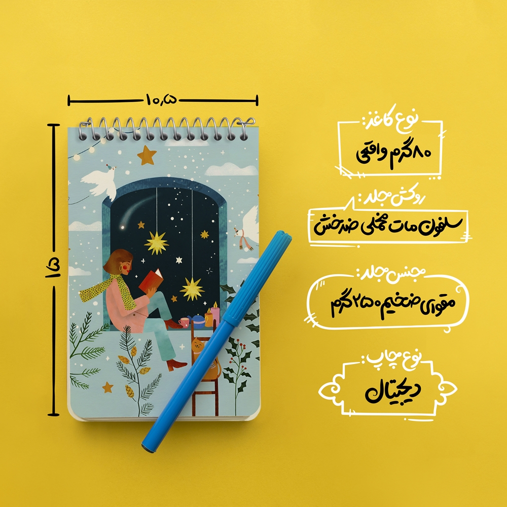 برند خندالو در زمینه تولید انواع دفاتر فانتزی و تحصیلی فعالیت میکند که به دلیل جذابیت ظاهری و طرح های متنوع طرفداران زیادی دارد. دفتر یادداشت خندالو طرح دختر و کتابخوان محصولی مناسب برای همه عاشقان لوازم التحریر است و همچنین همه کسانی که بنا به موقعیت تحصیل یا شغلشان با دفتر و نوشت افزار زیاد سر و کار دارند. در تولید دفتر یادداشت خندالو طرح دختر و کتابخوان از نوع صحافی فنر مارپیچ استفاده شده که در این نوع صحافی برگهها به راحتی چرخیده و یا بیرون آورده می شوند. دفتر های خندالو دارای جلد انعطاف پذیر از جنس مقوای گلاسه 250 گرم با روکش سلفون مات مخملی است که به شما امکان میدهد از دفتر خود بدون اینکه نگرانی از شکستن یا خراب شدن جلد را داشته باشید استفاده کنید و همچنین در این دفاتر از کاغذ 80 گرم با کیفیت استفاده شده که باعث میشود هنگام نوشتن به خوبی جوهر قلم بر روی صفحه نشسته و از خط خوردگیها جلوگیری کند. دفتر یادداشت خندالو با جنس و دوام مناسب، برگه های کاملاً سفید و خطوط طوسی دقیق را داراست که انسان را به نوشتن منظم و زیبا ترغیب میکند. طراحی کاملاً مناسب این دفاتر، به همراه کیفیت بالا، از آن یک محصول مورد علاقه و قابل اعتماد برای همه مقاطع تحصیلی میسازد. دفتر یادداشت خندالو طرح دختر و کتابخوان انتخابی هوشمندانه و مناسب برای افرادی است که به دنبال دفتری با کیفیت و کاربرد عالی هستند. این دفتر، همراه خوبی برای شما در تمام مراحل تحصیل و کار خواهد بود و تجربهای لذتبخش از نوشتن و آموختن را به شما هدیه میدهد.