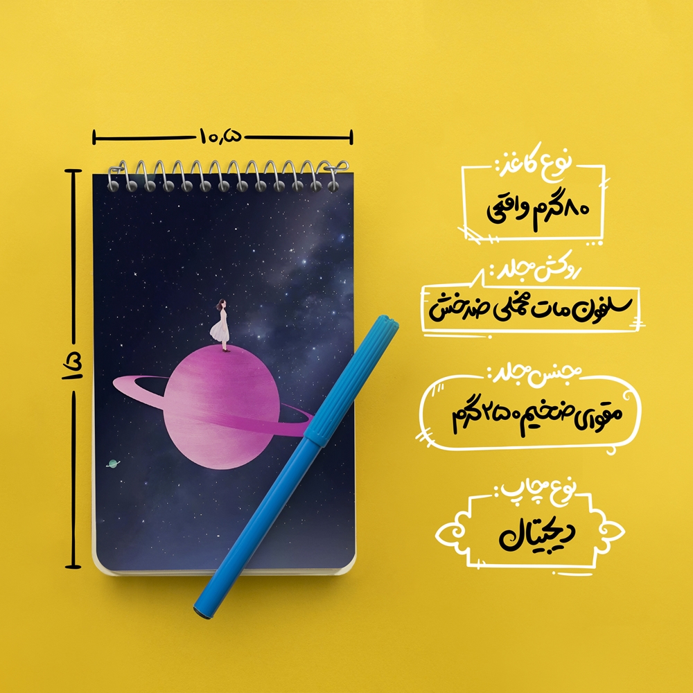 برند خندالو در زمینه تولید انواع دفاتر فانتزی و تحصیلی فعالیت میکند که به دلیل جذابیت ظاهری و طرح های متنوع طرفداران زیادی دارد. دفتر یادداشت خندالو طرح دختر و کهکشان محصولی مناسب برای همه عاشقان لوازم التحریر است و همچنین همه کسانی که بنا به موقعیت تحصیل یا شغلشان با دفتر و نوشت افزار زیاد سر و کار دارند. در تولید دفتر یادداشت خندالو طرح دختر و کهکشان از نوع صحافی فنر مارپیچ استفاده شده که در این نوع صحافی برگهها به راحتی چرخیده و یا بیرون آورده می شوند. دفتر های خندالو دارای جلد انعطاف پذیر از جنس مقوای گلاسه 250 گرم با روکش سلفون مات مخملی است که به شما امکان میدهد از دفتر خود بدون اینکه نگرانی از شکستن یا خراب شدن جلد را داشته باشید استفاده کنید و همچنین در این دفاتر از کاغذ 80 گرم با کیفیت استفاده شده که باعث میشود هنگام نوشتن به خوبی جوهر قلم بر روی صفحه نشسته و از خط خوردگیها جلوگیری کند. دفتر یادداشت خندالو با جنس و دوام مناسب، برگه های کاملاً سفید و خطوط طوسی دقیق را داراست که انسان را به نوشتن منظم و زیبا ترغیب میکند. طراحی کاملاً مناسب این دفاتر، به همراه کیفیت بالا، از آن یک محصول مورد علاقه و قابل اعتماد برای همه مقاطع تحصیلی میسازد. دفتر یادداشت خندالو طرح دختر و کهکشان انتخابی هوشمندانه و مناسب برای افرادی است که به دنبال دفتری با کیفیت و کاربرد عالی هستند. این دفتر، همراه خوبی برای شما در تمام مراحل تحصیل و کار خواهد بود و تجربهای لذتبخش از نوشتن و آموختن را به شما هدیه میدهد.
