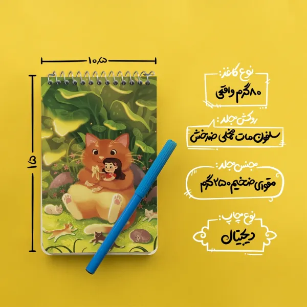 برند خندالو در زمینه تولید انواع دفاتر فانتزی و تحصیلی فعالیت میکند که به دلیل جذابیت ظاهری و طرح های متنوع طرفداران زیادی دارد. دفتر یادداشت خندالو طرح دختر و گربه ها محصولی مناسب برای همه عاشقان لوازم التحریر است و همچنین همه کسانی که بنا به موقعیت تحصیل یا شغلشان با دفتر و نوشت افزار زیاد سر و کار دارند. در تولید دفتر یادداشت خندالو طرح دختر و گربه ها از نوع صحافی فنر مارپیچ استفاده شده که در این نوع صحافی برگهها به راحتی چرخیده و یا بیرون آورده می شوند. دفتر های خندالو دارای جلد انعطاف پذیر از جنس مقوای گلاسه 250 گرم با روکش سلفون مات مخملی است که به شما امکان میدهد از دفتر خود بدون اینکه نگرانی از شکستن یا خراب شدن جلد را داشته باشید استفاده کنید و همچنین در این دفاتر از کاغذ 80 گرم با کیفیت استفاده شده که باعث میشود هنگام نوشتن به خوبی جوهر قلم بر روی صفحه نشسته و از خط خوردگیها جلوگیری کند. دفتر یادداشت خندالو با جنس و دوام مناسب، برگه های کاملاً سفید و خطوط طوسی دقیق را داراست که انسان را به نوشتن منظم و زیبا ترغیب میکند. طراحی کاملاً مناسب این دفاتر، به همراه کیفیت بالا، از آن یک محصول مورد علاقه و قابل اعتماد برای همه مقاطع تحصیلی میسازد. دفتر یادداشت خندالو طرح دختر و گربه ها انتخابی هوشمندانه و مناسب برای افرادی است که به دنبال دفتری با کیفیت و کاربرد عالی هستند. این دفتر، همراه خوبی برای شما در تمام مراحل تحصیل و کار خواهد بود و تجربهای لذتبخش از نوشتن و آموختن را به شما هدیه میدهد.