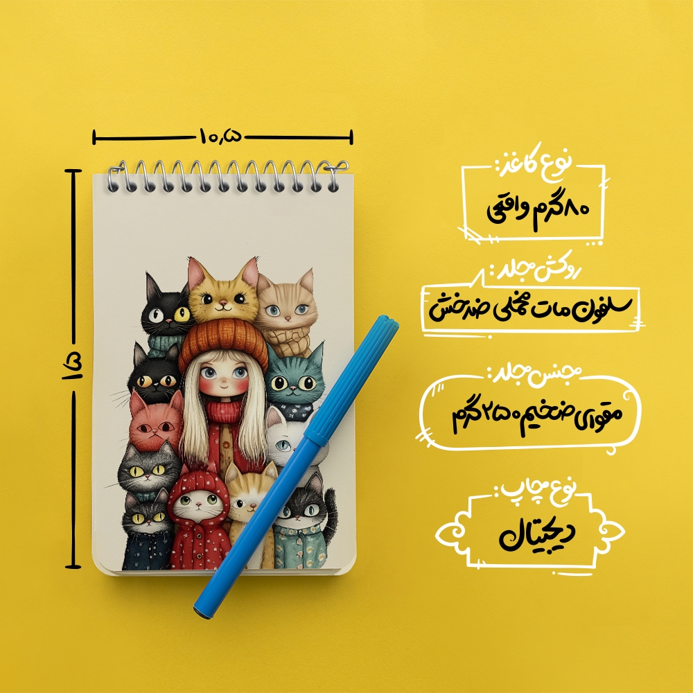 برند خندالو در زمینه تولید انواع دفاتر فانتزی و تحصیلی فعالیت میکند که به دلیل جذابیت ظاهری و طرح های متنوع طرفداران زیادی دارد. دفتر یادداشت خندالو طرح دختر و گربه ها محصولی مناسب برای همه عاشقان لوازم التحریر است و همچنین همه کسانی که بنا به موقعیت تحصیل یا شغلشان با دفتر و نوشت افزار زیاد سر و کار دارند. در تولید دفتر یادداشت خندالو طرح دختر و گربه ها از نوع صحافی فنر مارپیچ استفاده شده که در این نوع صحافی برگه‌ها به راحتی چرخیده و یا بیرون آورده می شوند.