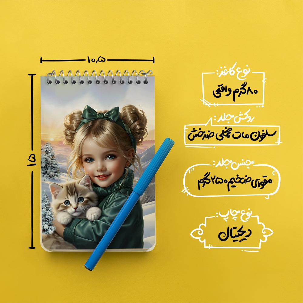 برند خندالو در زمینه تولید انواع دفاتر فانتزی و تحصیلی فعالیت میکند که به دلیل جذابیت ظاهری و طرح های متنوع طرفداران زیادی دارد. دفتر یادداشت خندالو طرح دختر و گربه کیوت محصولی مناسب برای همه عاشقان لوازم التحریر است و همچنین همه کسانی که بنا به موقعیت تحصیل یا شغلشان با دفتر و نوشت افزار زیاد سر و کار دارند. در تولید دفتر یادداشت خندالو طرح دختر و گربه کیوت از نوع صحافی فنر مارپیچ استفاده شده که در این نوع صحافی برگهها به راحتی چرخیده و یا بیرون آورده می شوند. دفتر های خندالو دارای جلد انعطاف پذیر از جنس مقوای گلاسه 250 گرم با روکش سلفون مات مخملی است که به شما امکان میدهد از دفتر خود بدون اینکه نگرانی از شکستن یا خراب شدن جلد را داشته باشید استفاده کنید و همچنین در این دفاتر از کاغذ 80 گرم با کیفیت استفاده شده که باعث میشود هنگام نوشتن به خوبی جوهر قلم بر روی صفحه نشسته و از خط خوردگیها جلوگیری کند. دفتر یادداشت خندالو با جنس و دوام مناسب، برگه های کاملاً سفید و خطوط طوسی دقیق را داراست که انسان را به نوشتن منظم و زیبا ترغیب میکند. طراحی کاملاً مناسب این دفاتر، به همراه کیفیت بالا، از آن یک محصول مورد علاقه و قابل اعتماد برای همه مقاطع تحصیلی میسازد. دفتر یادداشت خندالو طرح دختر و گربه کیوت انتخابی هوشمندانه و مناسب برای افرادی است که به دنبال دفتری با کیفیت و کاربرد عالی هستند. این دفتر، همراه خوبی برای شما در تمام مراحل تحصیل و کار خواهد بود و تجربهای لذتبخش از نوشتن و آموختن را به شما هدیه میدهد.