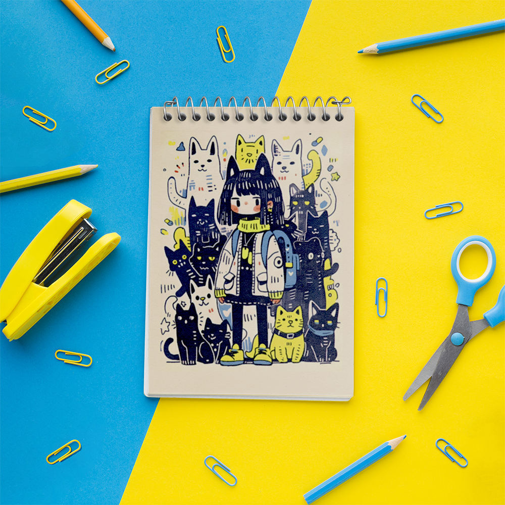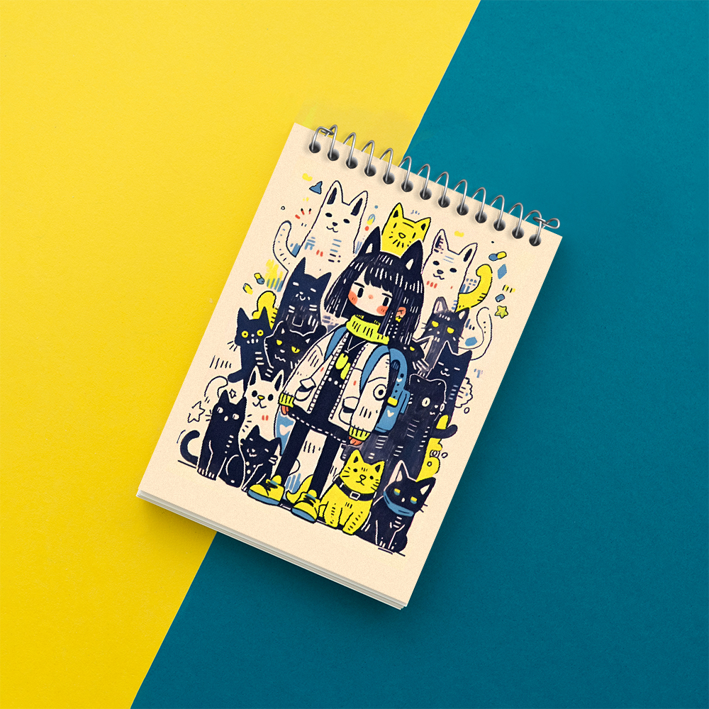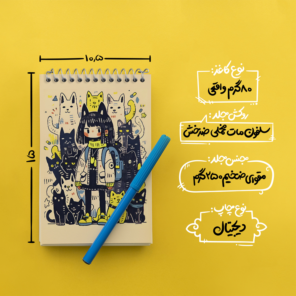 برند خندالو در زمینه تولید انواع دفاتر فانتزی و تحصیلی فعالیت میکند که به دلیل جذابیت ظاهری و طرح های متنوع طرفداران زیادی دارد. دفتر یادداشت خندالو طرح دختر و گربه محصولی مناسب برای همه عاشقان لوازم التحریر است و همچنین همه کسانی که بنا به موقعیت تحصیل یا شغلشان با دفتر و نوشت افزار زیاد سر و کار دارند. در تولید دفتر یادداشت خندالو طرح دختر و گربه از نوع صحافی فنر مارپیچ استفاده شده که در این نوع صحافی برگه‌ها به راحتی چرخیده و یا بیرون آورده می شوند.