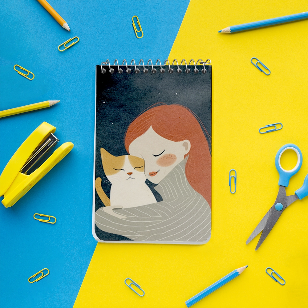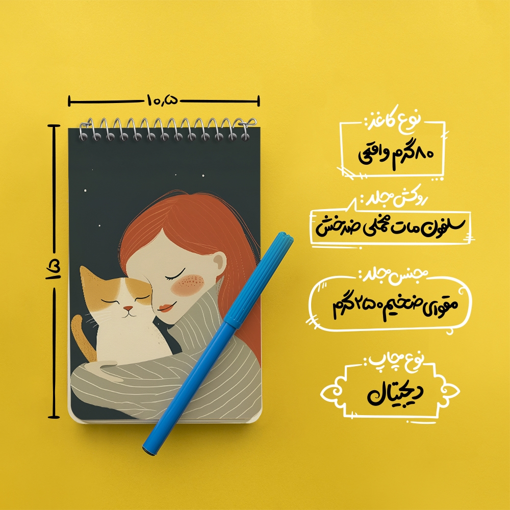 برند خندالو در زمینه تولید انواع دفاتر فانتزی و تحصیلی فعالیت میکند که به دلیل جذابیت ظاهری و طرح های متنوع طرفداران زیادی دارد. دفتر یادداشت خندالو طرح دختر و گربه محصولی مناسب برای همه عاشقان لوازم التحریر است و همچنین همه کسانی که بنا به موقعیت تحصیل یا شغلشان با دفتر و نوشت افزار زیاد سر و کار دارند. در تولید دفتر یادداشت خندالو طرح دختر و گربه از نوع صحافی فنر مارپیچ استفاده شده که در این نوع صحافی برگه‌ها به راحتی چرخیده و یا بیرون آورده می شوند.