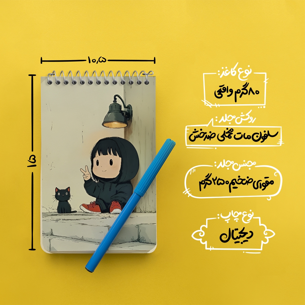 برند خندالو در زمینه تولید انواع دفاتر فانتزی و تحصیلی فعالیت میکند که به دلیل جذابیت ظاهری و طرح های متنوع طرفداران زیادی دارد. دفتر یادداشت خندالو طرح دختر و گربه محصولی مناسب برای همه عاشقان لوازم التحریر است و همچنین همه کسانی که بنا به موقعیت تحصیل یا شغلشان با دفتر و نوشت افزار زیاد سر و کار دارند. در تولید دفتر یادداشت خندالو طرح دختر و گربه از نوع صحافی فنر مارپیچ استفاده شده که در این نوع صحافی برگه‌ها به راحتی چرخیده و یا بیرون آورده می شوند.
