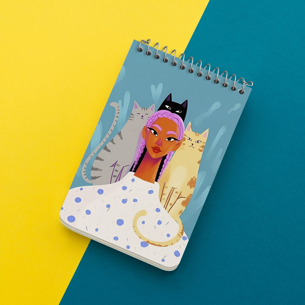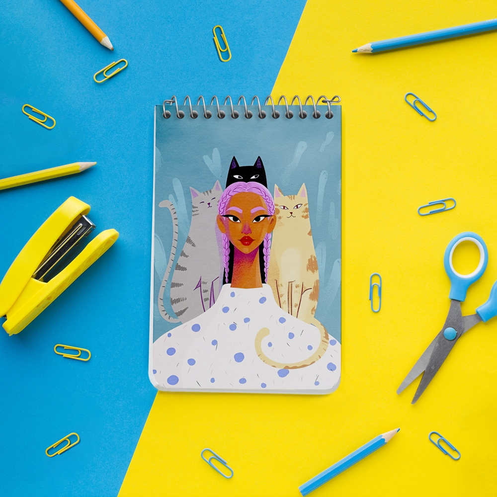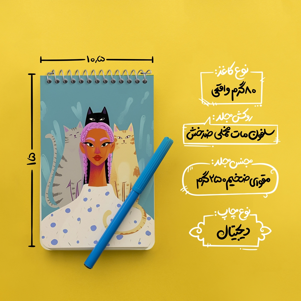 برند خندالو در زمینه تولید انواع دفاتر فانتزی و تحصیلی فعالیت میکند که به دلیل جذابیت ظاهری و طرح های متنوع طرفداران زیادی دارد. دفتر یادداشت خندالو طرح دختر و گربه محصولی مناسب برای همه عاشقان لوازم التحریر است و همچنین همه کسانی که بنا به موقعیت تحصیل یا شغلشان با دفتر و نوشت افزار زیاد سر و کار دارند. در تولید دفتر یادداشت خندالو طرح دختر و گربه از نوع صحافی فنر مارپیچ استفاده شده که در این نوع صحافی برگه‌ها به راحتی چرخیده و یا بیرون آورده می شوند.