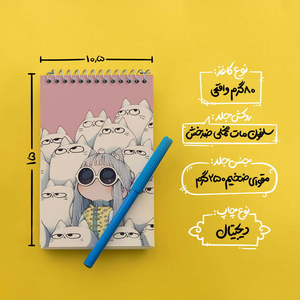 برند خندالو در زمینه تولید انواع دفاتر فانتزی و تحصیلی فعالیت میکند که به دلیل جذابیت ظاهری و طرح های متنوع طرفداران زیادی دارد. دفتر یادداشت خندالو طرح دختر و گربه محصولی مناسب برای همه عاشقان لوازم التحریر است و همچنین همه کسانی که بنا به موقعیت تحصیل یا شغلشان با دفتر و نوشت افزار زیاد سر و کار دارند. در تولید دفتر یادداشت خندالو طرح دختر و گربه از نوع صحافی فنر مارپیچ استفاده شده که در این نوع صحافی برگه‌ها به راحتی چرخیده و یا بیرون آورده می شوند.
