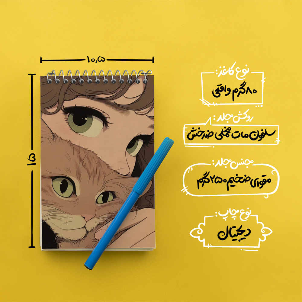 برند خندالو در زمینه تولید انواع دفاتر فانتزی و تحصیلی فعالیت میکند که به دلیل جذابیت ظاهری و طرح های متنوع طرفداران زیادی دارد. دفتر یادداشت خندالو طرح دختر و گربه محصولی مناسب برای همه عاشقان لوازم التحریر است و همچنین همه کسانی که بنا به موقعیت تحصیل یا شغلشان با دفتر و نوشت افزار زیاد سر و کار دارند. در تولید دفتر یادداشت خندالو طرح دختر و گربه از نوع صحافی فنر مارپیچ استفاده شده که در این نوع صحافی برگهها به راحتی چرخیده و یا بیرون آورده می شوند. دفتر های خندالو دارای جلد انعطاف پذیر از جنس مقوای گلاسه 250 گرم با روکش سلفون مات مخملی است که به شما امکان میدهد از دفتر خود بدون اینکه نگرانی از شکستن یا خراب شدن جلد را داشته باشید استفاده کنید و همچنین در این دفاتر از کاغذ 80 گرم با کیفیت استفاده شده که باعث میشود هنگام نوشتن به خوبی جوهر قلم بر روی صفحه نشسته و از خط خوردگیها جلوگیری کند. دفتر یادداشت خندالو با جنس و دوام مناسب، برگه های کاملاً سفید و خطوط طوسی دقیق را داراست که انسان را به نوشتن منظم و زیبا ترغیب میکند. طراحی کاملاً مناسب این دفاتر، به همراه کیفیت بالا، از آن یک محصول مورد علاقه و قابل اعتماد برای همه مقاطع تحصیلی میسازد. دفتر یادداشت خندالو طرح دختر و گربه انتخابی هوشمندانه و مناسب برای افرادی است که به دنبال دفتری با کیفیت و کاربرد عالی هستند. این دفتر، همراه خوبی برای شما در تمام مراحل تحصیل و کار خواهد بود و تجربهای لذتبخش از نوشتن و آموختن را به شما هدیه میدهد.