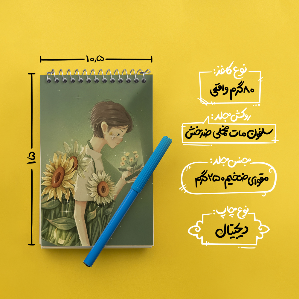 برند خندالو در زمینه تولید انواع دفاتر فانتزی و تحصیلی فعالیت میکند که به دلیل جذابیت ظاهری و طرح های متنوع طرفداران زیادی دارد. دفتر یادداشت خندالو طرح دختر و گل آفتابگردان محصولی مناسب برای همه عاشقان لوازم التحریر است و همچنین همه کسانی که بنا به موقعیت تحصیل یا شغلشان با دفتر و نوشت افزار زیاد سر و کار دارند. در تولید دفتر یادداشت خندالو طرح دختر و گل آفتابگردان از نوع صحافی فنر مارپیچ استفاده شده که در این نوع صحافی برگه‌ها به راحتی چرخیده و یا بیرون آورده می شوند.