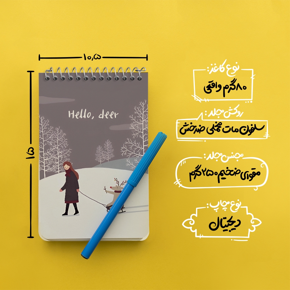 برند خندالو در زمینه تولید انواع دفاتر فانتزی و تحصیلی فعالیت میکند که به دلیل جذابیت ظاهری و طرح های متنوع طرفداران زیادی دارد. دفتر یادداشت خندالو طرح دختر و گوزن محصولی مناسب برای همه عاشقان لوازم التحریر است و همچنین همه کسانی که بنا به موقعیت تحصیل یا شغلشان با دفتر و نوشت افزار زیاد سر و کار دارند. در تولید دفتر یادداشت خندالو طرح دختر و گوزن از نوع صحافی فنر مارپیچ استفاده شده که در این نوع صحافی برگهها به راحتی چرخیده و یا بیرون آورده می شوند. دفتر های خندالو دارای جلد انعطاف پذیر از جنس مقوای گلاسه 250 گرم با روکش سلفون مات مخملی است که به شما امکان میدهد از دفتر خود بدون اینکه نگرانی از شکستن یا خراب شدن جلد را داشته باشید استفاده کنید و همچنین در این دفاتر از کاغذ 80 گرم با کیفیت استفاده شده که باعث میشود هنگام نوشتن به خوبی جوهر قلم بر روی صفحه نشسته و از خط خوردگیها جلوگیری کند. دفتر یادداشت خندالو با جنس و دوام مناسب، برگه های کاملاً سفید و خطوط طوسی دقیق را داراست که انسان را به نوشتن منظم و زیبا ترغیب میکند. طراحی کاملاً مناسب این دفاتر، به همراه کیفیت بالا، از آن یک محصول مورد علاقه و قابل اعتماد برای همه مقاطع تحصیلی میسازد. دفتر یادداشت خندالو طرح دختر و گوزن انتخابی هوشمندانه و مناسب برای افرادی است که به دنبال دفتری با کیفیت و کاربرد عالی هستند. این دفتر، همراه خوبی برای شما در تمام مراحل تحصیل و کار خواهد بود و تجربهای لذتبخش از نوشتن و آموختن را به شما هدیه میدهد.