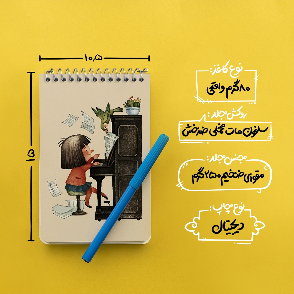 برند خندالو در زمینه تولید انواع دفاتر فانتزی و تحصیلی فعالیت میکند که به دلیل جذابیت ظاهری و طرح های متنوع طرفداران زیادی دارد. دفتر یادداشت خندالو طرح دختر پیانیست محصولی مناسب برای همه عاشقان لوازم التحریر است و همچنین همه کسانی که بنا به موقعیت تحصیل یا شغلشان با دفتر و نوشت افزار زیاد سر و کار دارند. در تولید دفتر یادداشت خندالو طرح دختر پیانیست از نوع صحافی فنر مارپیچ استفاده شده که در این نوع صحافی برگهها به راحتی چرخیده و یا بیرون آورده می شوند. دفتر های خندالو دارای جلد انعطاف پذیر از جنس مقوای گلاسه 250 گرم با روکش سلفون مات مخملی است که به شما امکان میدهد از دفتر خود بدون اینکه نگرانی از شکستن یا خراب شدن جلد را داشته باشید استفاده کنید و همچنین در این دفاتر از کاغذ 80 گرم با کیفیت استفاده شده که باعث میشود هنگام نوشتن به خوبی جوهر قلم بر روی صفحه نشسته و از خط خوردگیها جلوگیری کند. دفتر یادداشت خندالو با جنس و دوام مناسب، برگه های کاملاً سفید و خطوط طوسی دقیق را داراست که انسان را به نوشتن منظم و زیبا ترغیب میکند. طراحی کاملاً مناسب این دفاتر، به همراه کیفیت بالا، از آن یک محصول مورد علاقه و قابل اعتماد برای همه مقاطع تحصیلی میسازد. دفتر یادداشت خندالو طرح دختر پیانیست انتخابی هوشمندانه و مناسب برای افرادی است که به دنبال دفتری با کیفیت و کاربرد عالی هستند. این دفتر، همراه خوبی برای شما در تمام مراحل تحصیل و کار خواهد بود و تجربهای لذتبخش از نوشتن و آموختن را به شما هدیه میدهد.