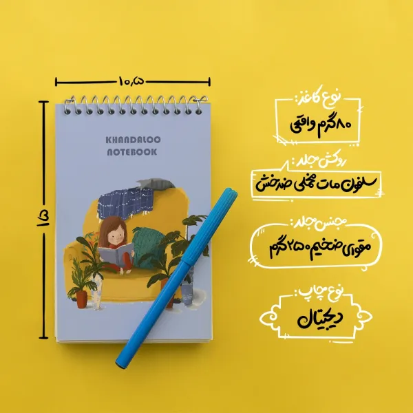 برند خندالو در زمینه تولید انواع دفاتر فانتزی و تحصیلی فعالیت میکند که به دلیل جذابیت ظاهری و طرح های متنوع طرفداران زیادی دارد. دفتر یادداشت خندالو طرح دختر کتابخوان محصولی مناسب برای همه عاشقان لوازم التحریر است و همچنین همه کسانی که بنا به موقعیت تحصیل یا شغلشان با دفتر و نوشت افزار زیاد سر و کار دارند. در تولید دفتر یادداشت خندالو طرح دختر کتابخوان از نوع صحافی فنر مارپیچ استفاده شده که در این نوع صحافی برگهها به راحتی چرخیده و یا بیرون آورده می شوند. دفتر های خندالو دارای جلد انعطاف پذیر از جنس مقوای گلاسه 250 گرم با روکش سلفون مات مخملی است که به شما امکان میدهد از دفتر خود بدون اینکه نگرانی از شکستن یا خراب شدن جلد را داشته باشید استفاده کنید و همچنین در این دفاتر از کاغذ 80 گرم با کیفیت استفاده شده که باعث میشود هنگام نوشتن به خوبی جوهر قلم بر روی صفحه نشسته و از خط خوردگیها جلوگیری کند. دفتر یادداشت خندالو با جنس و دوام مناسب، برگه های کاملاً سفید و خطوط طوسی دقیق را داراست که انسان را به نوشتن منظم و زیبا ترغیب میکند. طراحی کاملاً مناسب این دفاتر، به همراه کیفیت بالا، از آن یک محصول مورد علاقه و قابل اعتماد برای همه مقاطع تحصیلی میسازد. دفتر یادداشت خندالو طرح دختر کتابخوان انتخابی هوشمندانه و مناسب برای افرادی است که به دنبال دفتری با کیفیت و کاربرد عالی هستند. این دفتر، همراه خوبی برای شما در تمام مراحل تحصیل و کار خواهد بود و تجربهای لذتبخش از نوشتن و آموختن را به شما هدیه میدهد.