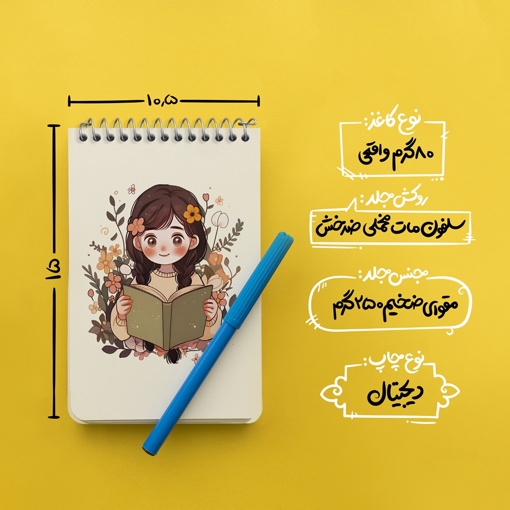 برند خندالو در زمینه تولید انواع دفاتر فانتزی و تحصیلی فعالیت میکند که به دلیل جذابیت ظاهری و طرح های متنوع طرفداران زیادی دارد. دفتر یادداشت خندالو طرح دختر کتاب خوان محصولی مناسب برای همه عاشقان لوازم التحریر است و همچنین همه کسانی که بنا به موقعیت تحصیل یا شغلشان با دفتر و نوشت افزار زیاد سر و کار دارند. در تولید دفتر یادداشت خندالو طرح دختر کتاب خوان از نوع صحافی فنر مارپیچ استفاده شده که در این نوع صحافی برگهها به راحتی چرخیده و یا بیرون آورده می شوند. دفتر های خندالو دارای جلد انعطاف پذیر از جنس مقوای گلاسه 250 گرم با روکش سلفون مات مخملی است که به شما امکان میدهد از دفتر خود بدون اینکه نگرانی از شکستن یا خراب شدن جلد را داشته باشید استفاده کنید و همچنین در این دفاتر از کاغذ 80 گرم با کیفیت استفاده شده که باعث میشود هنگام نوشتن به خوبی جوهر قلم بر روی صفحه نشسته و از خط خوردگیها جلوگیری کند. دفتر یادداشت خندالو با جنس و دوام مناسب، برگه های کاملاً سفید و خطوط طوسی دقیق را داراست که انسان را به نوشتن منظم و زیبا ترغیب میکند. طراحی کاملاً مناسب این دفاتر، به همراه کیفیت بالا، از آن یک محصول مورد علاقه و قابل اعتماد برای همه مقاطع تحصیلی میسازد. دفتر یادداشت خندالو طرح دختر کتاب خوان انتخابی هوشمندانه و مناسب برای افرادی است که به دنبال دفتری با کیفیت و کاربرد عالی هستند. این دفتر، همراه خوبی برای شما در تمام مراحل تحصیل و کار خواهد بود و تجربهای لذتبخش از نوشتن و آموختن را به شما هدیه میدهد.