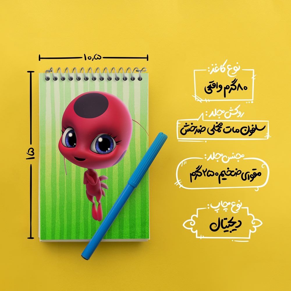 برند خندالو در زمینه تولید انواع دفاتر فانتزی و تحصیلی فعالیت میکند که به دلیل جذابیت ظاهری و طرح های متنوع طرفداران زیادی دارد. دفتر یادداشت خندالو طرح دختر کفشدوزکی محصولی مناسب برای همه عاشقان لوازم التحریر است و همچنین همه کسانی که بنا به موقعیت تحصیل یا شغلشان با دفتر و نوشت افزار زیاد سر و کار دارند. در تولید دفتر یادداشت خندالو طرح دختر کفشدوزکی از نوع صحافی فنر مارپیچ استفاده شده که در این نوع صحافی برگه‌ها به راحتی چرخیده و یا بیرون آورده می شوند.