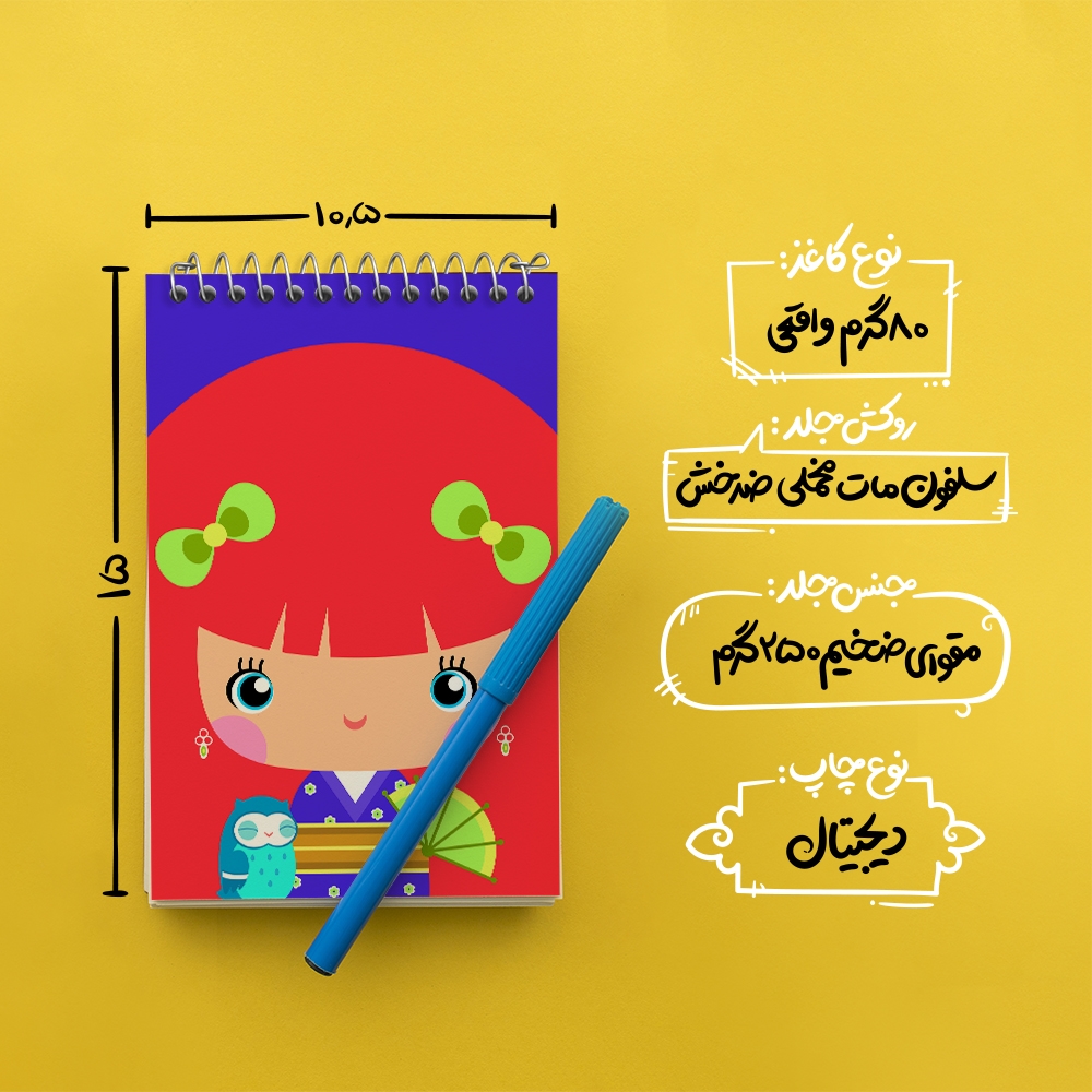 برند خندالو در زمینه تولید انواع دفاتر فانتزی و تحصیلی فعالیت میکند که به دلیل جذابیت ظاهری و طرح های متنوع طرفداران زیادی دارد. دفتر یادداشت خندالو طرح دختر کیوت محصولی مناسب برای همه عاشقان لوازم التحریر است و همچنین همه کسانی که بنا به موقعیت تحصیل یا شغلشان با دفتر و نوشت افزار زیاد سر و کار دارند. در تولید دفتر یادداشت خندالو طرح دختر کیوت از نوع صحافی فنر مارپیچ استفاده شده که در این نوع صحافی برگه‌ها به راحتی چرخیده و یا بیرون آورده می شوند.