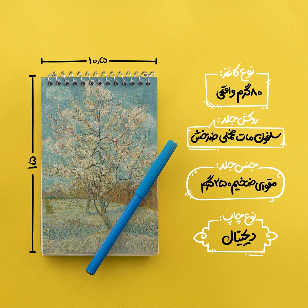 برند خندالو در زمینه تولید انواع دفاتر فانتزی و تحصیلی فعالیت میکند که به دلیل جذابیت ظاهری و طرح های متنوع طرفداران زیادی دارد. دفتر یادداشت خندالو طرح درخت هلو صورتی ونسان ونگوگ (Van Gogh) محصولی مناسب برای همه عاشقان لوازم التحریر است و همچنین همه کسانی که بنا به موقعیت تحصیل یا شغلشان با دفتر و نوشت افزار زیاد سر و کار دارند. در تولید دفتر یادداشت خندالو طرح درخت هلو صورتی ونسان ونگوگ (Van Gogh) از نوع صحافی فنر مارپیچ استفاده شده که در این نوع صحافی برگهها به راحتی چرخیده و یا بیرون آورده می شوند. دفتر های خندالو دارای جلد انعطاف پذیر از جنس مقوای گلاسه 250 گرم با روکش سلفون مات مخملی است که به شما امکان میدهد از دفتر خود بدون اینکه نگرانی از شکستن یا خراب شدن جلد را داشته باشید استفاده کنید و همچنین در این دفاتر از کاغذ 80 گرم با کیفیت استفاده شده که باعث میشود هنگام نوشتن به خوبی جوهر قلم بر روی صفحه نشسته و از خط خوردگیها جلوگیری کند. دفتر یادداشت خندالو با جنس و دوام مناسب، برگه های کاملاً سفید و خطوط طوسی دقیق را داراست که انسان را به نوشتن منظم و زیبا ترغیب میکند. طراحی کاملاً مناسب این دفاتر، به همراه کیفیت بالا، از آن یک محصول مورد علاقه و قابل اعتماد برای همه مقاطع تحصیلی میسازد. دفتر یادداشت خندالو طرح درخت هلو صورتی ونسان ونگوگ (Van Gogh) انتخابی هوشمندانه و مناسب برای افرادی است که به دنبال دفتری با کیفیت و کاربرد عالی هستند. این دفتر، همراه خوبی برای شما در تمام مراحل تحصیل و کار خواهد بود و تجربهای لذتبخش از نوشتن و آموختن را به شما هدیه میدهد.