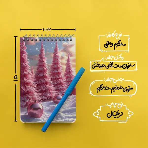 برند خندالو در زمینه تولید انواع دفاتر فانتزی و تحصیلی فعالیت میکند که به دلیل جذابیت ظاهری و طرح های متنوع طرفداران زیادی دارد. دفتر یادداشت خندالو طرح درخت کریسمس صورتی محصولی مناسب برای همه عاشقان لوازم التحریر است و همچنین همه کسانی که بنا به موقعیت تحصیل یا شغلشان با دفتر و نوشت افزار زیاد سر و کار دارند. در تولید دفتر یادداشت خندالو طرح درخت کریسمس صورتی از نوع صحافی فنر مارپیچ استفاده شده که در این نوع صحافی برگه‌ها به راحتی چرخیده و یا بیرون آورده می شوند.