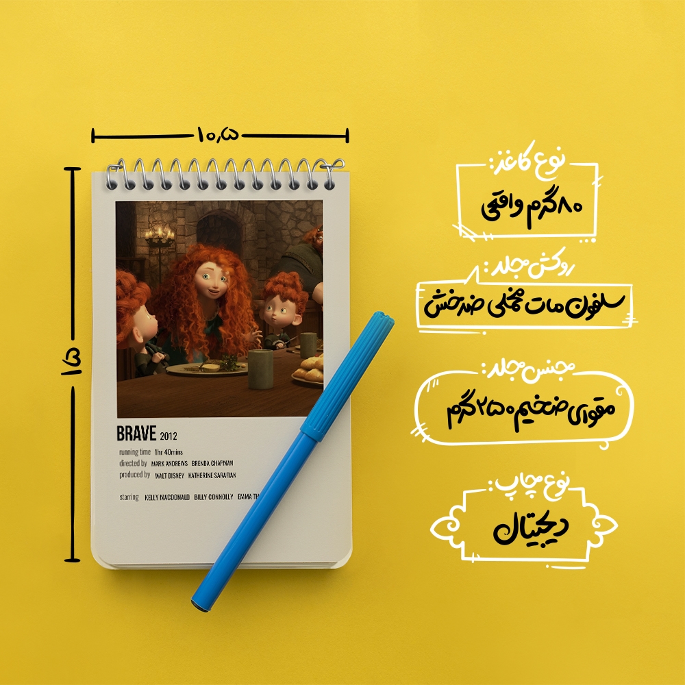 برند خندالو در زمینه تولید انواع دفاتر فانتزی و تحصیلی فعالیت میکند که به دلیل جذابیت ظاهری و طرح های متنوع طرفداران زیادی دارد. دفتر یادداشت خندالو طرح دلیر (Brave) محصولی مناسب برای همه عاشقان لوازم التحریر است و همچنین همه کسانی که بنا به موقعیت تحصیل یا شغلشان با دفتر و نوشت افزار زیاد سر و کار دارند. در تولید دفتر یادداشت خندالو طرح دلیر (Brave) از نوع صحافی فنر مارپیچ استفاده شده که در این نوع صحافی برگه‌ها به راحتی چرخیده و یا بیرون آورده می شوند.