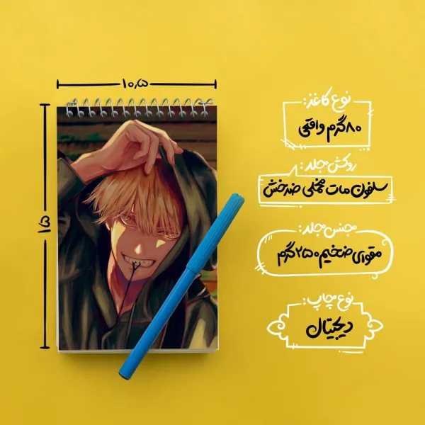 برند خندالو در زمینه تولید انواع دفاتر فانتزی و تحصیلی فعالیت میکند که به دلیل جذابیت ظاهری و طرح های متنوع طرفداران زیادی دارد. دفتر یادداشت خندالو طرح دنجی انیمه مرد اره ای Chainsaw Man محصولی مناسب برای همه عاشقان لوازم التحریر است و همچنین همه کسانی که بنا به موقعیت تحصیل یا شغلشان با دفتر و نوشت افزار زیاد سر و کار دارند. در تولید دفتر یادداشت خندالو طرح دنجی انیمه مرد اره ای Chainsaw Man از نوع صحافی فنر مارپیچ استفاده شده که در این نوع صحافی برگهها به راحتی چرخیده و یا بیرون آورده می شوند. دفتر های خندالو دارای جلد انعطاف پذیر از جنس مقوای گلاسه 250 گرم با روکش سلفون مات مخملی است که به شما امکان میدهد از دفتر خود بدون اینکه نگرانی از شکستن یا خراب شدن جلد را داشته باشید استفاده کنید و همچنین در این دفاتر از کاغذ 80 گرم با کیفیت استفاده شده که باعث میشود هنگام نوشتن به خوبی جوهر قلم بر روی صفحه نشسته و از خط خوردگیها جلوگیری کند. دفتر یادداشت خندالو با جنس و دوام مناسب، برگه های کاملاً سفید و خطوط طوسی دقیق را داراست که انسان را به نوشتن منظم و زیبا ترغیب میکند. طراحی کاملاً مناسب این دفاتر، به همراه کیفیت بالا، از آن یک محصول مورد علاقه و قابل اعتماد برای همه مقاطع تحصیلی میسازد. دفتر یادداشت خندالو طرح دنجی انیمه مرد اره ای Chainsaw Man انتخابی هوشمندانه و مناسب برای افرادی است که به دنبال دفتری با کیفیت و کاربرد عالی هستند. این دفتر، همراه خوبی برای شما در تمام مراحل تحصیل و کار خواهد بود و تجربهای لذتبخش از نوشتن و آموختن را به شما هدیه میدهد.