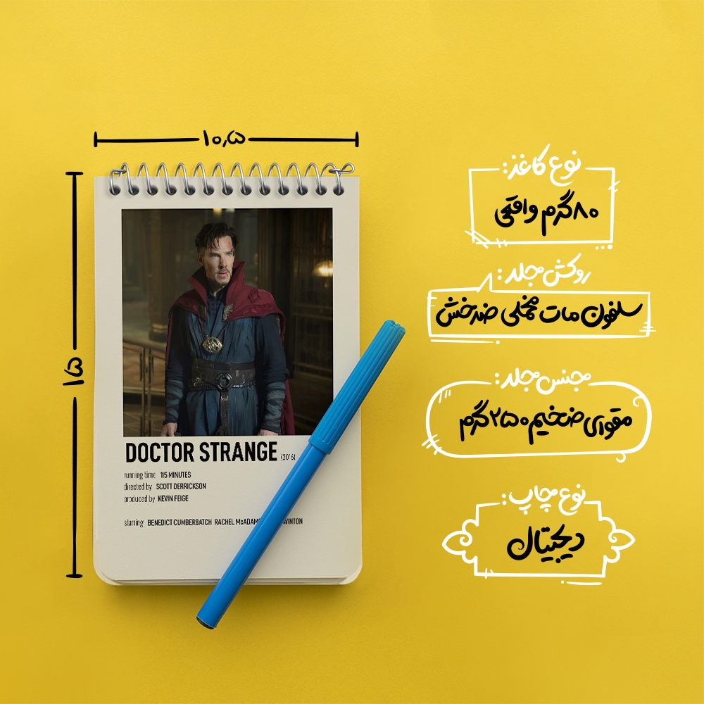 برند خندالو در زمینه تولید انواع دفاتر فانتزی و تحصیلی فعالیت میکند که به دلیل جذابیت ظاهری و طرح های متنوع طرفداران زیادی دارد. دفتر یادداشت خندالو طرح دکتر استرنج (Doctor Strange) محصولی مناسب برای همه عاشقان لوازم التحریر است و همچنین همه کسانی که بنا به موقعیت تحصیل یا شغلشان با دفتر و نوشت افزار زیاد سر و کار دارند. در تولید دفتر یادداشت خندالو طرح دکتر استرنج (Doctor Strange) از نوع صحافی فنر مارپیچ استفاده شده که در این نوع صحافی برگهها به راحتی چرخیده و یا بیرون آورده می شوند. دفتر های خندالو دارای جلد انعطاف پذیر از جنس مقوای گلاسه 250 گرم با روکش سلفون مات مخملی است که به شما امکان میدهد از دفتر خود بدون اینکه نگرانی از شکستن یا خراب شدن جلد را داشته باشید استفاده کنید و همچنین در این دفاتر از کاغذ 80 گرم با کیفیت استفاده شده که باعث میشود هنگام نوشتن به خوبی جوهر قلم بر روی صفحه نشسته و از خط خوردگیها جلوگیری کند. دفتر یادداشت خندالو با جنس و دوام مناسب، برگه های کاملاً سفید و خطوط طوسی دقیق را داراست که انسان را به نوشتن منظم و زیبا ترغیب میکند. طراحی کاملاً مناسب این دفاتر، به همراه کیفیت بالا، از آن یک محصول مورد علاقه و قابل اعتماد برای همه مقاطع تحصیلی میسازد. دفتر یادداشت خندالو طرح دکتر استرنج (Doctor Strange) انتخابی هوشمندانه و مناسب برای افرادی است که به دنبال دفتری با کیفیت و کاربرد عالی هستند. این دفتر، همراه خوبی برای شما در تمام مراحل تحصیل و کار خواهد بود و تجربهای لذتبخش از نوشتن و آموختن را به شما هدیه میدهد.