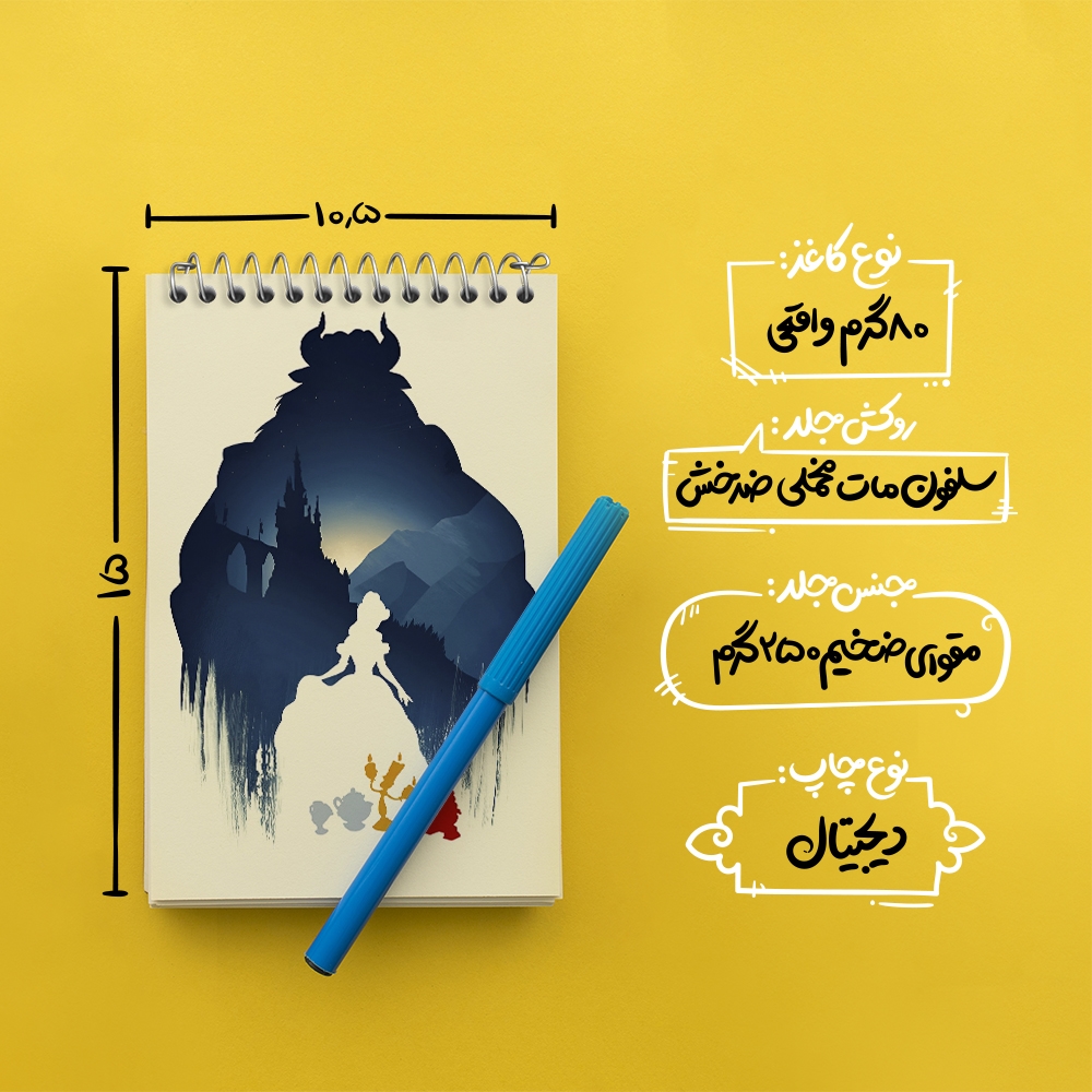 برند خندالو در زمینه تولید انواع دفاتر فانتزی و تحصیلی فعالیت میکند که به دلیل جذابیت ظاهری و طرح های متنوع طرفداران زیادی دارد. دفتر یادداشت خندالو طرح دیو و دلبر(Beast And Beauty) محصولی مناسب برای همه عاشقان لوازم التحریر است و همچنین همه کسانی که بنا به موقعیت تحصیل یا شغلشان با دفتر و نوشت افزار زیاد سر و کار دارند. در تولید دفتر یادداشت خندالو طرح دیو و دلبر(Beast And Beauty) از نوع صحافی فنر مارپیچ استفاده شده که در این نوع صحافی برگهها به راحتی چرخیده و یا بیرون آورده می شوند. دفتر های خندالو دارای جلد انعطاف پذیر از جنس مقوای گلاسه 250 گرم با روکش سلفون مات مخملی است که به شما امکان میدهد از دفتر خود بدون اینکه نگرانی از شکستن یا خراب شدن جلد را داشته باشید استفاده کنید و همچنین در این دفاتر از کاغذ 80 گرم با کیفیت استفاده شده که باعث میشود هنگام نوشتن به خوبی جوهر قلم بر روی صفحه نشسته و از خط خوردگیها جلوگیری کند. دفتر یادداشت خندالو با جنس و دوام مناسب، برگه های کاملاً سفید و خطوط طوسی دقیق را داراست که انسان را به نوشتن منظم و زیبا ترغیب میکند. طراحی کاملاً مناسب این دفاتر، به همراه کیفیت بالا، از آن یک محصول مورد علاقه و قابل اعتماد برای همه مقاطع تحصیلی میسازد. دفتر یادداشت خندالو طرح دیو و دلبر(Beast And Beauty) انتخابی هوشمندانه و مناسب برای افرادی است که به دنبال دفتری با کیفیت و کاربرد عالی هستند. این دفتر، همراه خوبی برای شما در تمام مراحل تحصیل و کار خواهد بود و تجربهای لذتبخش از نوشتن و آموختن را به شما هدیه میدهد.