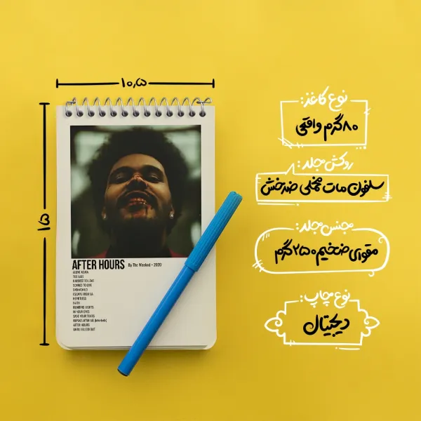 برند خندالو در زمینه تولید انواع دفاتر فانتزی و تحصیلی فعالیت میکند که به دلیل جذابیت ظاهری و طرح های متنوع طرفداران زیادی دارد. دفتر یادداشت خندالو طرح د ویکند (The Weeknd) محصولی مناسب برای همه عاشقان لوازم التحریر است و همچنین همه کسانی که بنا به موقعیت تحصیل یا شغلشان با دفتر و نوشت افزار زیاد سر و کار دارند. در تولید دفتر یادداشت خندالو طرح د ویکند (The Weeknd) از نوع صحافی فنر مارپیچ استفاده شده که در این نوع صحافی برگهها به راحتی چرخیده و یا بیرون آورده می شوند. دفتر های خندالو دارای جلد انعطاف پذیر از جنس مقوای گلاسه 250 گرم با روکش سلفون مات مخملی است که به شما امکان میدهد از دفتر خود بدون اینکه نگرانی از شکستن یا خراب شدن جلد را داشته باشید استفاده کنید و همچنین در این دفاتر از کاغذ 80 گرم با کیفیت استفاده شده که باعث میشود هنگام نوشتن به خوبی جوهر قلم بر روی صفحه نشسته و از خط خوردگیها جلوگیری کند. دفتر یادداشت خندالو با جنس و دوام مناسب، برگه های کاملاً سفید و خطوط طوسی دقیق را داراست که انسان را به نوشتن منظم و زیبا ترغیب میکند. طراحی کاملاً مناسب این دفاتر، به همراه کیفیت بالا، از آن یک محصول مورد علاقه و قابل اعتماد برای همه مقاطع تحصیلی میسازد. دفتر یادداشت خندالو طرح د ویکند (The Weeknd) انتخابی هوشمندانه و مناسب برای افرادی است که به دنبال دفتری با کیفیت و کاربرد عالی هستند. این دفتر، همراه خوبی برای شما در تمام مراحل تحصیل و کار خواهد بود و تجربهای لذتبخش از نوشتن و آموختن را به شما هدیه میدهد.
