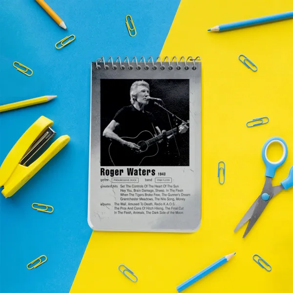برند خندالو در زمینه تولید انواع دفاتر فانتزی و تحصیلی فعالیت میکند که به دلیل جذابیت ظاهری و طرح های متنوع طرفداران زیادی دارد. دفتر یادداشت خندالو طرح راجر واترز (Roger Waters) محصولی مناسب برای همه عاشقان لوازم التحریر است و همچنین همه کسانی که بنا به موقعیت تحصیل یا شغلشان با دفتر و نوشت افزار زیاد سر و کار دارند. در تولید دفتر یادداشت خندالو طرح راجر واترز (Roger Waters) از نوع صحافی فنر مارپیچ استفاده شده که در این نوع صحافی برگه‌ها به راحتی چرخیده و یا بیرون آورده می شوند.