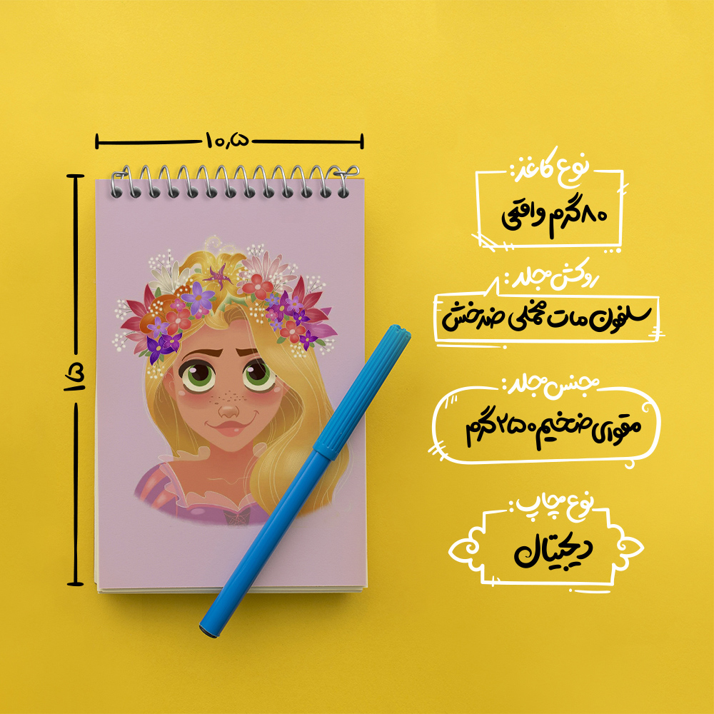 برند خندالو در زمینه تولید انواع دفاتر فانتزی و تحصیلی فعالیت میکند که به دلیل جذابیت ظاهری و طرح های متنوع طرفداران زیادی دارد. دفتر یادداشت خندالو طرح راپونزل محصولی مناسب برای همه عاشقان لوازم التحریر است و همچنین همه کسانی که بنا به موقعیت تحصیل یا شغلشان با دفتر و نوشت افزار زیاد سر و کار دارند. در تولید دفتر یادداشت خندالو طرح راپونزل از نوع صحافی فنر مارپیچ استفاده شده که در این نوع صحافی برگهها به راحتی چرخیده و یا بیرون آورده می شوند. دفتر های خندالو دارای جلد انعطاف پذیر از جنس مقوای گلاسه 250 گرم با روکش سلفون مات مخملی است که به شما امکان میدهد از دفتر خود بدون اینکه نگرانی از شکستن یا خراب شدن جلد را داشته باشید استفاده کنید و همچنین در این دفاتر از کاغذ 80 گرم با کیفیت استفاده شده که باعث میشود هنگام نوشتن به خوبی جوهر قلم بر روی صفحه نشسته و از خط خوردگیها جلوگیری کند. دفتر یادداشت خندالو با جنس و دوام مناسب، برگه های کاملاً سفید و خطوط طوسی دقیق را داراست که انسان را به نوشتن منظم و زیبا ترغیب میکند. طراحی کاملاً مناسب این دفاتر، به همراه کیفیت بالا، از آن یک محصول مورد علاقه و قابل اعتماد برای همه مقاطع تحصیلی میسازد. دفتر یادداشت خندالو طرح راپونزل انتخابی هوشمندانه و مناسب برای افرادی است که به دنبال دفتری با کیفیت و کاربرد عالی هستند. این دفتر، همراه خوبی برای شما در تمام مراحل تحصیل و کار خواهد بود و تجربهای لذتبخش از نوشتن و آموختن را به شما هدیه میدهد.