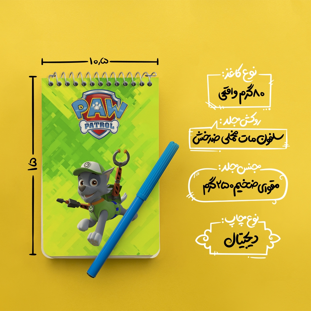 برند خندالو در زمینه تولید انواع دفاتر فانتزی و تحصیلی فعالیت میکند که به دلیل جذابیت ظاهری و طرح های متنوع طرفداران زیادی دارد. دفتر یادداشت خندالو طرح راکی سگ های نگهبان محصولی مناسب برای همه عاشقان لوازم التحریر است و همچنین همه کسانی که بنا به موقعیت تحصیل یا شغلشان با دفتر و نوشت افزار زیاد سر و کار دارند. در تولید دفتر یادداشت خندالو طرح راکی سگ های نگهبان از نوع صحافی فنر مارپیچ استفاده شده که در این نوع صحافی برگه‌ها به راحتی چرخیده و یا بیرون آورده می شوند.