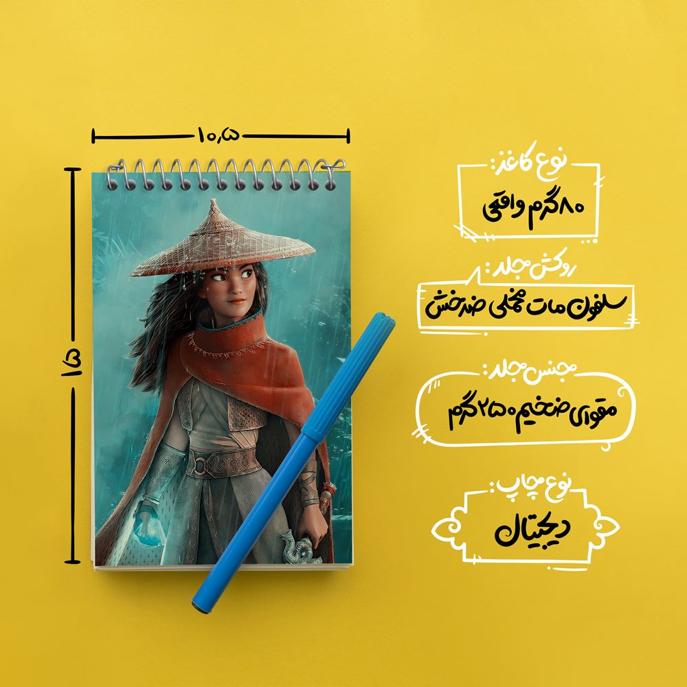 برند خندالو در زمینه تولید انواع دفاتر فانتزی و تحصیلی فعالیت میکند که به دلیل جذابیت ظاهری و طرح های متنوع طرفداران زیادی دارد. دفتر یادداشت خندالو طرح رایا و آخرین اژدها Raya and the Last Dragon محصولی مناسب برای همه عاشقان لوازم التحریر است و همچنین همه کسانی که بنا به موقعیت تحصیل یا شغلشان با دفتر و نوشت افزار زیاد سر و کار دارند. در تولید دفتر یادداشت خندالو طرح رایا و آخرین اژدها Raya and the Last Dragon از نوع صحافی فنر مارپیچ استفاده شده که در این نوع صحافی برگهها به راحتی چرخیده و یا بیرون آورده می شوند. دفتر های خندالو دارای جلد انعطاف پذیر از جنس مقوای گلاسه 250 گرم با روکش سلفون مات مخملی است که به شما امکان میدهد از دفتر خود بدون اینکه نگرانی از شکستن یا خراب شدن جلد را داشته باشید استفاده کنید و همچنین در این دفاتر از کاغذ 80 گرم با کیفیت استفاده شده که باعث میشود هنگام نوشتن به خوبی جوهر قلم بر روی صفحه نشسته و از خط خوردگیها جلوگیری کند. دفتر یادداشت خندالو با جنس و دوام مناسب، برگه های کاملاً سفید و خطوط طوسی دقیق را داراست که انسان را به نوشتن منظم و زیبا ترغیب میکند. طراحی کاملاً مناسب این دفاتر، به همراه کیفیت بالا، از آن یک محصول مورد علاقه و قابل اعتماد برای همه مقاطع تحصیلی میسازد. دفتر یادداشت خندالو طرح رایا و آخرین اژدها Raya and the Last Dragon انتخابی هوشمندانه و مناسب برای افرادی است که به دنبال دفتری با کیفیت و کاربرد عالی هستند. این دفتر، همراه خوبی برای شما در تمام مراحل تحصیل و کار خواهد بود و تجربهای لذتبخش از نوشتن و آموختن را به شما هدیه میدهد.