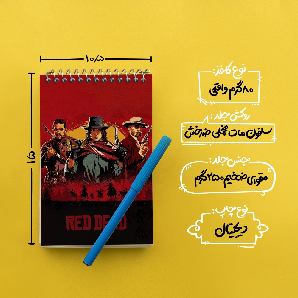 برند خندالو در زمینه تولید انواع دفاتر فانتزی و تحصیلی فعالیت میکند که به دلیل جذابیت ظاهری و طرح های متنوع طرفداران زیادی دارد. دفتر یادداشت خندالو طرح رد دد (Red Dead) محصولی مناسب برای همه عاشقان لوازم التحریر است و همچنین همه کسانی که بنا به موقعیت تحصیل یا شغلشان با دفتر و نوشت افزار زیاد سر و کار دارند. در تولید دفتر یادداشت خندالو طرح رد دد (Red Dead) از نوع صحافی فنر مارپیچ استفاده شده که در این نوع صحافی برگه‌ها به راحتی چرخیده و یا بیرون آورده می شوند.