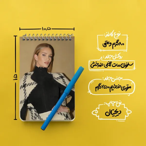برند خندالو در زمینه تولید انواع دفاتر فانتزی و تحصیلی فعالیت میکند که به دلیل جذابیت ظاهری و طرح های متنوع طرفداران زیادی دارد. دفتر یادداشت خندالو طرح رزی هانتینگتون (Rosie Huntington) محصولی مناسب برای همه عاشقان لوازم التحریر است و همچنین همه کسانی که بنا به موقعیت تحصیل یا شغلشان با دفتر و نوشت افزار زیاد سر و کار دارند. در تولید دفتر یادداشت خندالو طرح رزی هانتینگتون (Rosie Huntington) از نوع صحافی فنر مارپیچ استفاده شده که در این نوع صحافی برگه‌ها به راحتی چرخیده و یا بیرون آورده می شوند.
