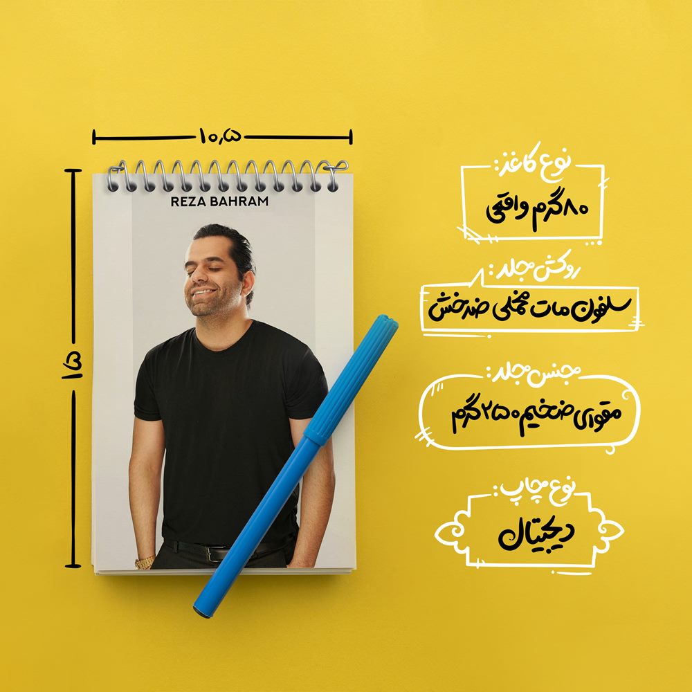 برند خندالو در زمینه تولید انواع دفاتر فانتزی و تحصیلی فعالیت میکند که به دلیل جذابیت ظاهری و طرح های متنوع طرفداران زیادی دارد. دفتر یادداشت خندالو طرح رضا بهرام محصولی مناسب برای همه عاشقان لوازم التحریر است و همچنین همه کسانی که بنا به موقعیت تحصیل یا شغلشان با دفتر و نوشت افزار زیاد سر و کار دارند. در تولید دفتر یادداشت خندالو طرح رضا بهرام از نوع صحافی فنر مارپیچ استفاده شده که در این نوع صحافی برگهها به راحتی چرخیده و یا بیرون آورده می شوند. دفتر های خندالو دارای جلد انعطاف پذیر از جنس مقوای گلاسه 250 گرم با روکش سلفون مات مخملی است که به شما امکان میدهد از دفتر خود بدون اینکه نگرانی از شکستن یا خراب شدن جلد را داشته باشید استفاده کنید و همچنین در این دفاتر از کاغذ 80 گرم با کیفیت استفاده شده که باعث میشود هنگام نوشتن به خوبی جوهر قلم بر روی صفحه نشسته و از خط خوردگیها جلوگیری کند. دفتر یادداشت خندالو با جنس و دوام مناسب، برگه های کاملاً سفید و خطوط طوسی دقیق را داراست که انسان را به نوشتن منظم و زیبا ترغیب میکند. طراحی کاملاً مناسب این دفاتر، به همراه کیفیت بالا، از آن یک محصول مورد علاقه و قابل اعتماد برای همه مقاطع تحصیلی میسازد. دفتر یادداشت خندالو طرح رضا بهرام انتخابی هوشمندانه و مناسب برای افرادی است که به دنبال دفتری با کیفیت و کاربرد عالی هستند. این دفتر، همراه خوبی برای شما در تمام مراحل تحصیل و کار خواهد بود و تجربهای لذتبخش از نوشتن و آموختن را به شما هدیه میدهد.