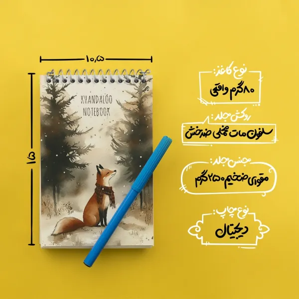 برند خندالو در زمینه تولید انواع دفاتر فانتزی و تحصیلی فعالیت میکند که به دلیل جذابیت ظاهری و طرح های متنوع طرفداران زیادی دارد. دفتر یادداشت خندالو طرح روباه کیوت محصولی مناسب برای همه عاشقان لوازم التحریر است و همچنین همه کسانی که بنا به موقعیت تحصیل یا شغلشان با دفتر و نوشت افزار زیاد سر و کار دارند. در تولید دفتر یادداشت خندالو طرح روباه کیوت از نوع صحافی فنر مارپیچ استفاده شده که در این نوع صحافی برگه‌ها به راحتی چرخیده و یا بیرون آورده می شوند.