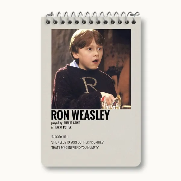 برند خندالو در زمینه تولید انواع دفاتر فانتزی و تحصیلی فعالیت میکند که به دلیل جذابیت ظاهری و طرح های متنوع طرفداران زیادی دارد. دفتر یادداشت خندالو طرح رون ویزلی (Ron Weasley) محصولی مناسب برای همه عاشقان لوازم التحریر است و همچنین همه کسانی که بنا به موقعیت تحصیل یا شغلشان با دفتر و نوشت افزار زیاد سر و کار دارند. در تولید دفتر یادداشت خندالو طرح رون ویزلی (Ron Weasley) از نوع صحافی فنر مارپیچ استفاده شده که در این نوع صحافی برگهها به راحتی چرخیده و یا بیرون آورده می شوند. دفتر های خندالو دارای جلد انعطاف پذیر از جنس مقوای گلاسه 250 گرم با روکش سلفون مات مخملی است که به شما امکان میدهد از دفتر خود بدون اینکه نگرانی از شکستن یا خراب شدن جلد را داشته باشید استفاده کنید و همچنین در این دفاتر از کاغذ 80 گرم با کیفیت استفاده شده که باعث میشود هنگام نوشتن به خوبی جوهر قلم بر روی صفحه نشسته و از خط خوردگیها جلوگیری کند. دفتر یادداشت خندالو با جنس و دوام مناسب، برگه های کاملاً سفید و خطوط طوسی دقیق را داراست که انسان را به نوشتن منظم و زیبا ترغیب میکند. طراحی کاملاً مناسب این دفاتر، به همراه کیفیت بالا، از آن یک محصول مورد علاقه و قابل اعتماد برای همه مقاطع تحصیلی میسازد. دفتر یادداشت خندالو طرح رون ویزلی (Ron Weasley) انتخابی هوشمندانه و مناسب برای افرادی است که به دنبال دفتری با کیفیت و کاربرد عالی هستند. این دفتر، همراه خوبی برای شما در تمام مراحل تحصیل و کار خواهد بود و تجربهای لذتبخش از نوشتن و آموختن را به شما هدیه میدهد.